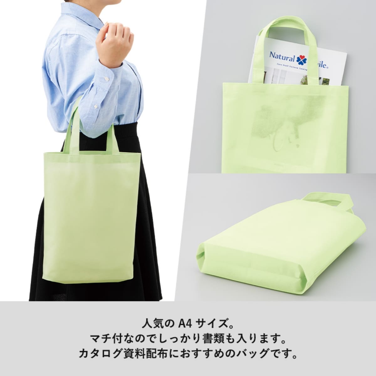 ガゼットマチ付きでしっかり入るA4不織布トートバッグです。