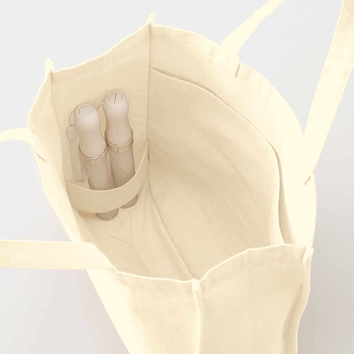 推し活定番の大うちわがすっぽり収まるサイズ感で、中にはペンライトやペットボトルの収納ができる仕切りポケットがついています。