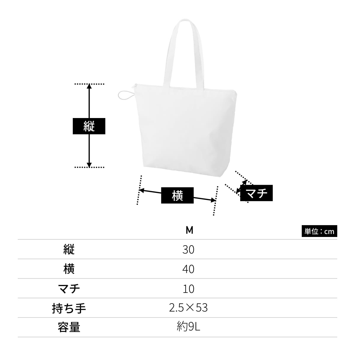 ポケッタブルファスナートート(M) | ノベルティ(小物) | 1枚 | TR-1351 | ホワイト