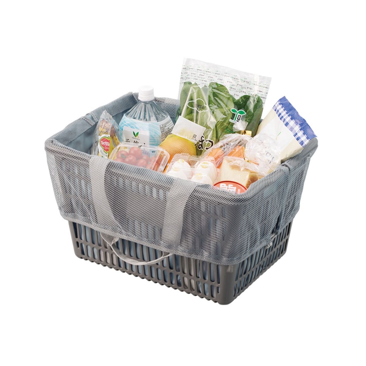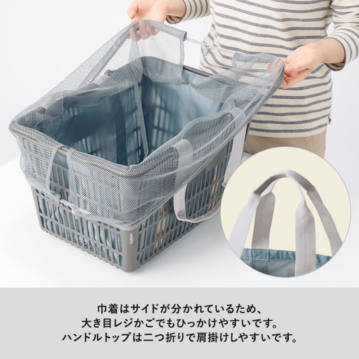 巾着のサイド部分は切れ目が入っており、大きめのレジカゴにも引っ掛けやすいので