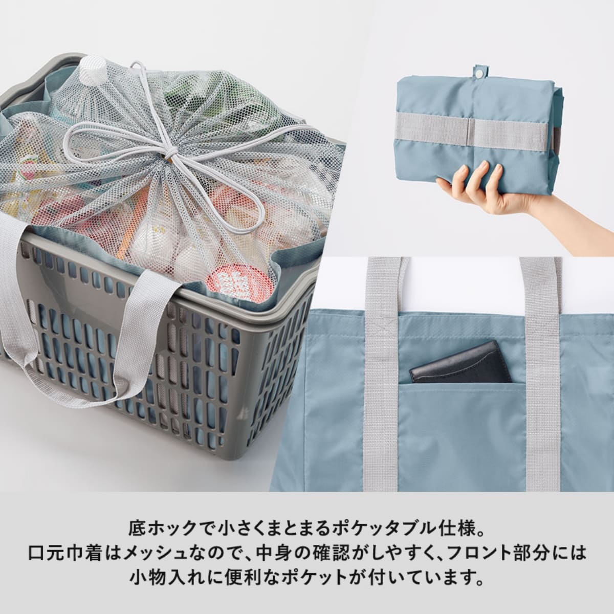 軽くて持ち運びしやすいポケッタブル仕様のレジカゴトートです。