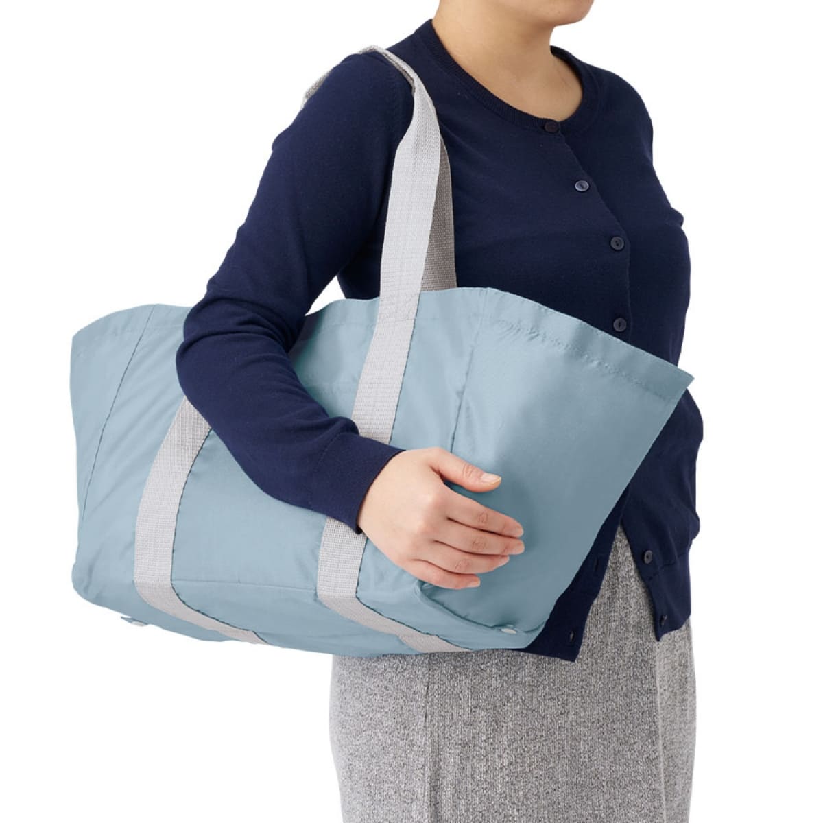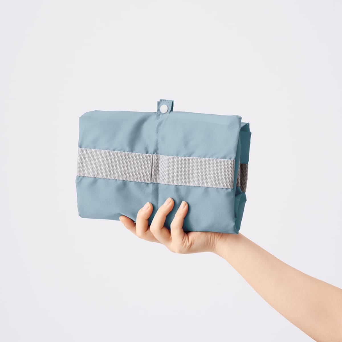 大容量ながら、底ホックで小さくまとめることのできるポケッタブル仕様で持ち歩きにも便利です。