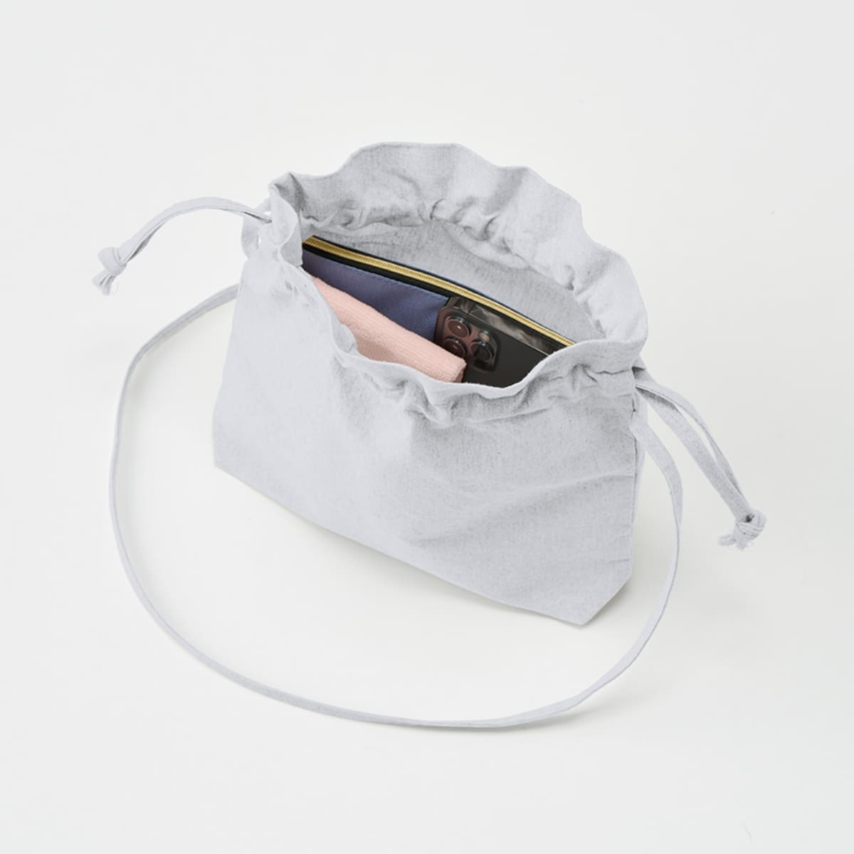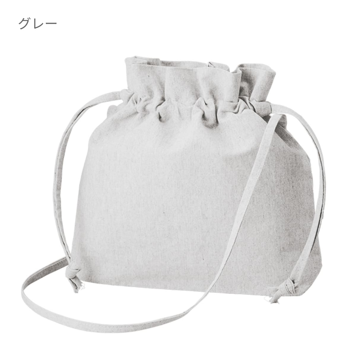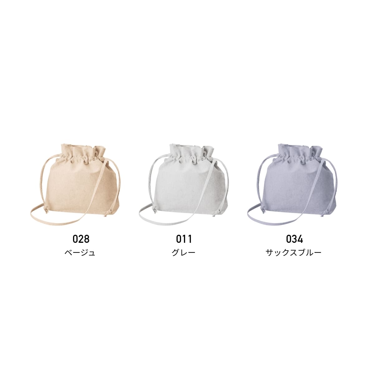 またショルダー紐はサイドで縫製しているので、紐が邪魔にならずに、巾着の開閉がしやすいような仕様です。