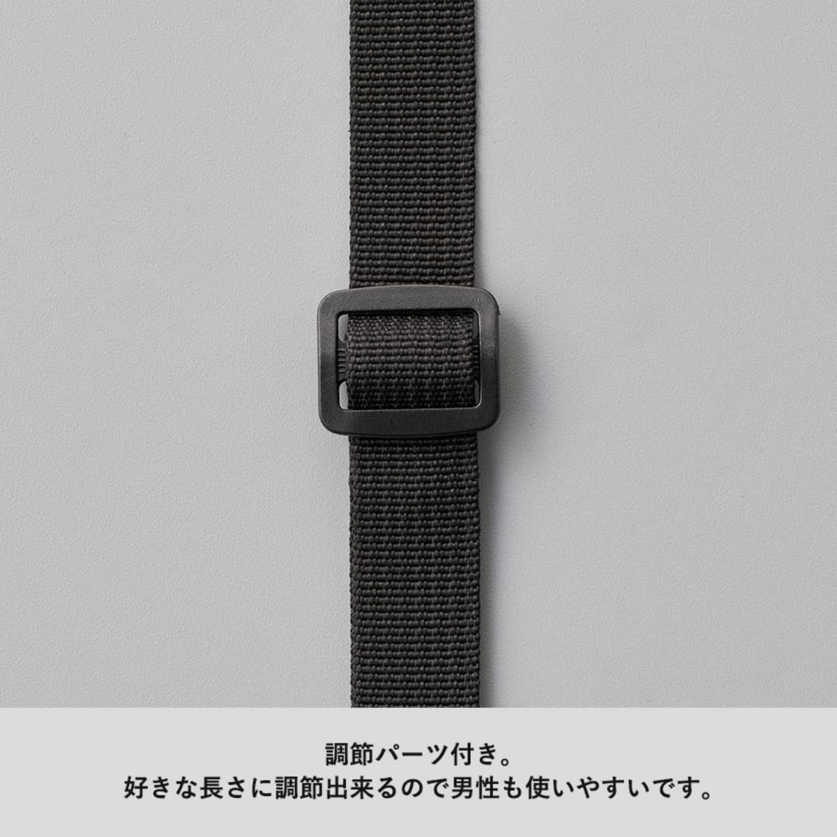 また調節パーツ付きなので、肩ひもの長さを調節でき、男女問わずお使いいただきやすい仕様です。