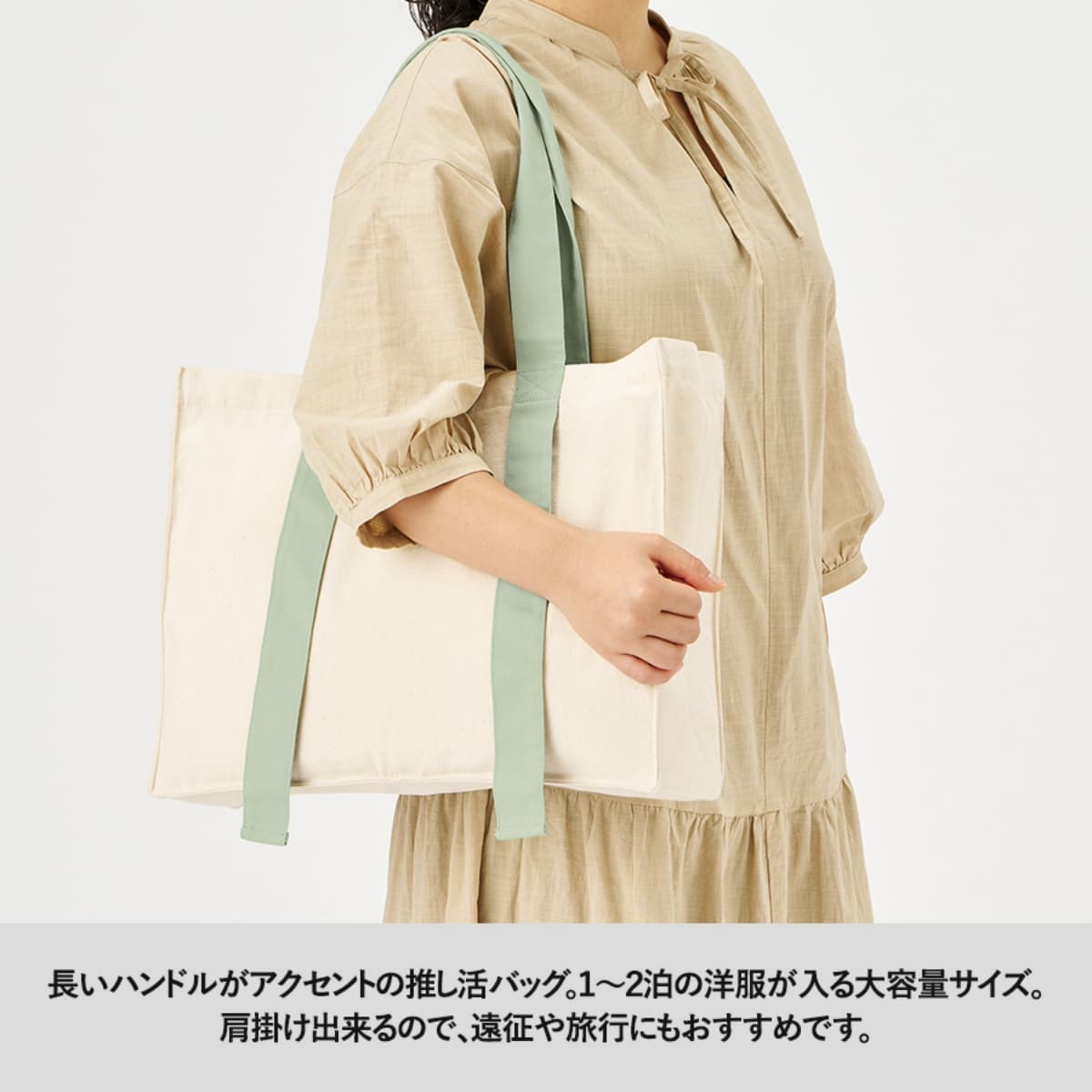1 2泊分の洋服が入る大容量サイズながら、肩掛けできる仕様なので旅行や遠征にもお使いいただけます。
