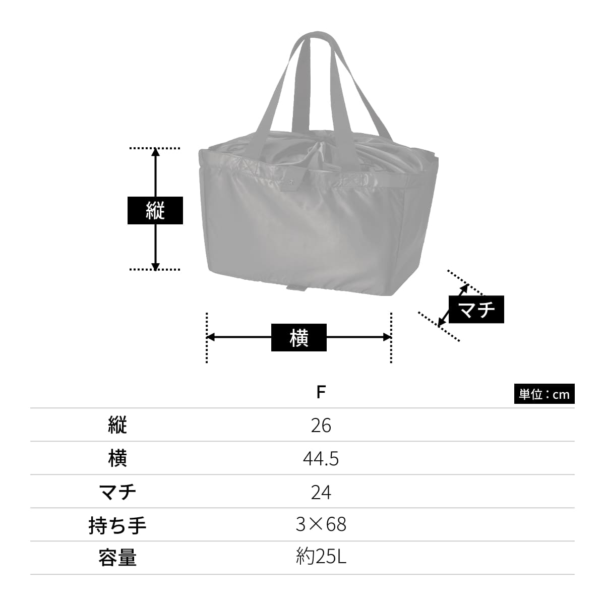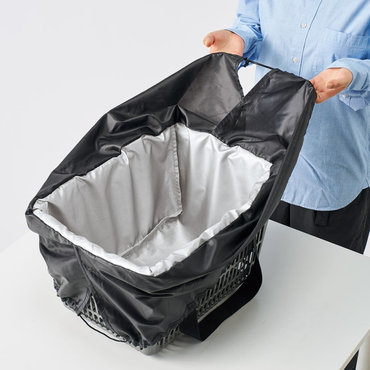 大きめのレジカゴにもぴったりはまるサイズ感で、スーパーなどで便利にお使いいただけます。