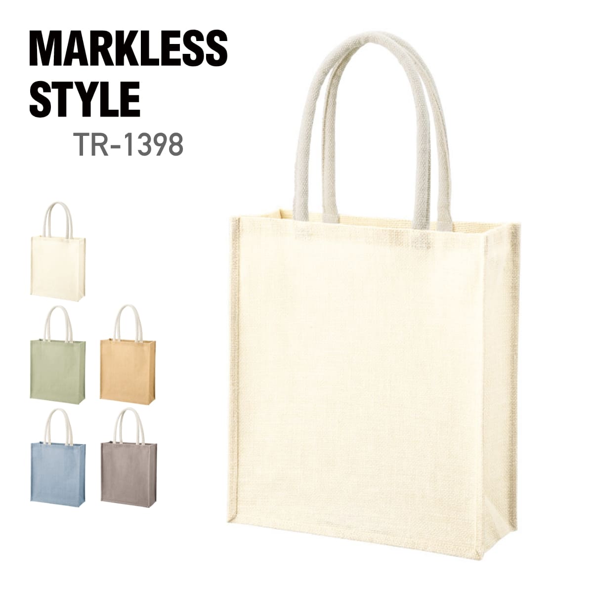 ジュートスクエアトート(ML) | ノベルティ(小物) | 1枚 | TR-1398 | ナチュラルホワイト