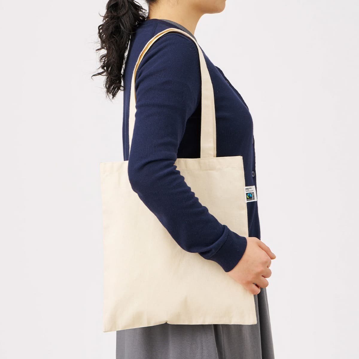 フェアトレードコットンを使用したフラットタイプのトートバッグ