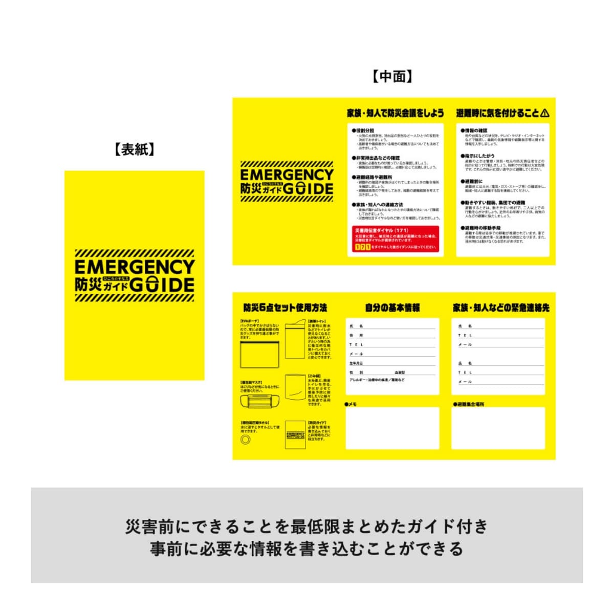 ・個包装マスク×3pcs・ごみ袋・防災ガイド