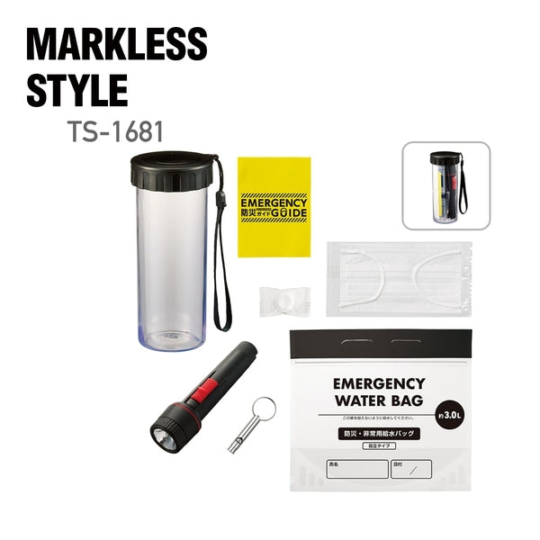 防災グッズ 防災セット 防災用品 災害グッズ 災害セット 災害用品 ポーチ ボトル 防災ライト ホイッスル ウォーターバッグ 個包装圧縮タオル(小) 個包装マスク 防災ガイド MARKLESS STYLE マークレススタイル Tshirt.st TSHIRT.ST ティーシャツドットエスティ てぃーしゃつどっとえすてぃ