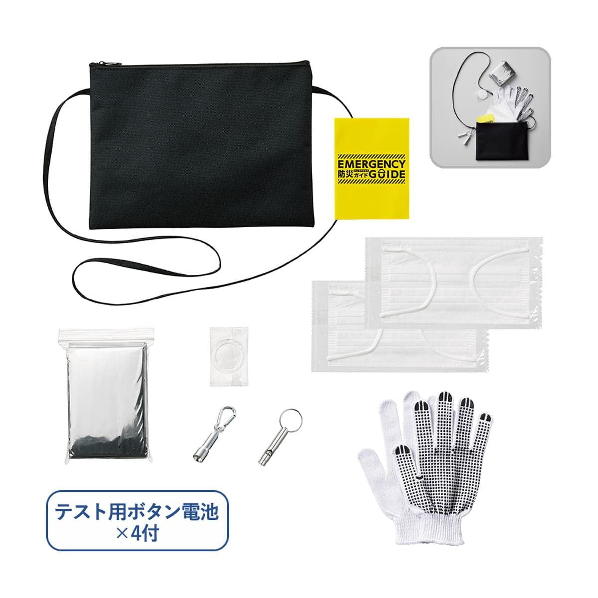 防災緊急8点セット サコッシュタイプ ブラック | ノベルティ(小物) | 1枚 | TS-1682 | ブラック