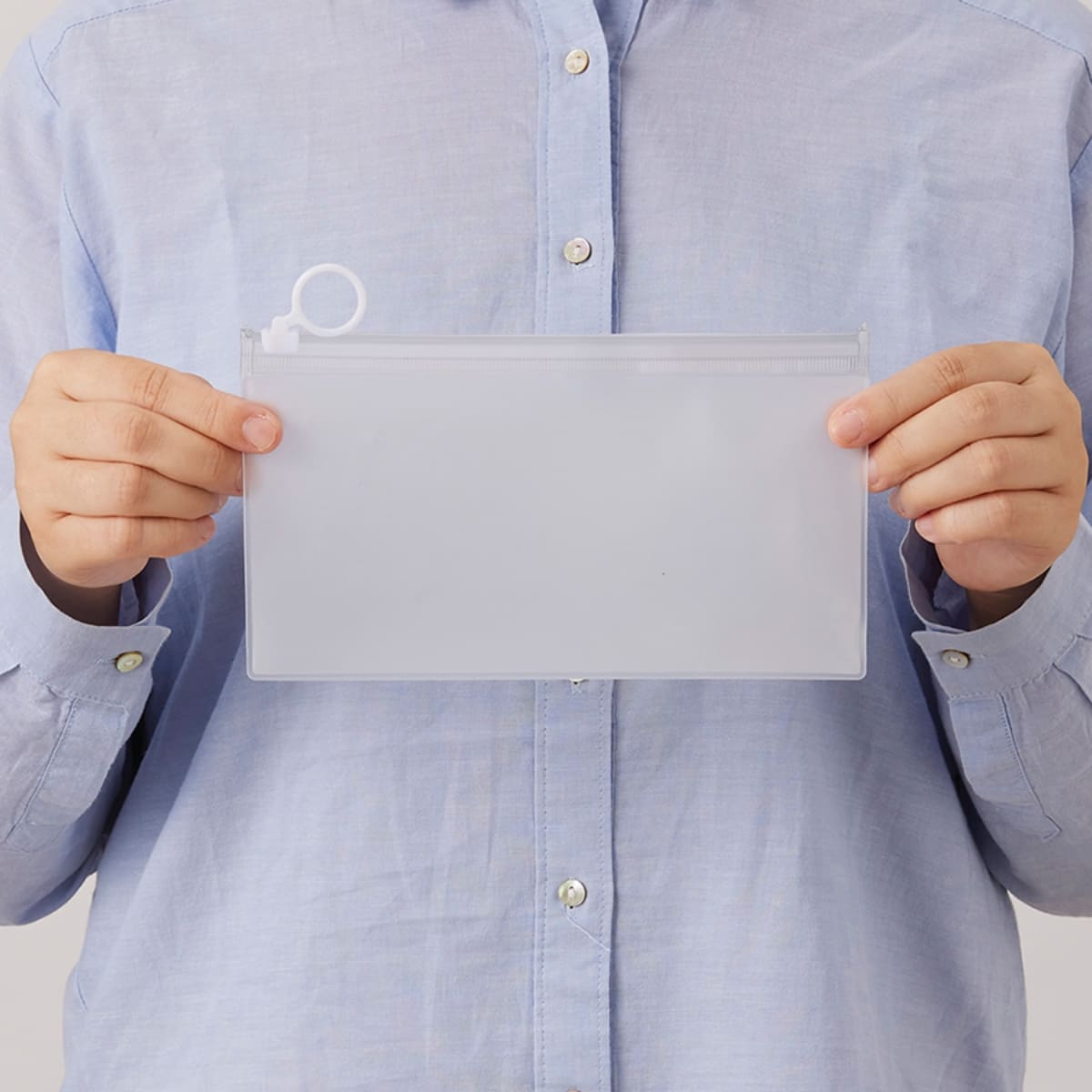 EVA素材のクリアポーチが登場しました!半透明なのでポーチの中身を確認することができます。歯ブラシ入れやペンポーチとしても便利なサイズ感です。