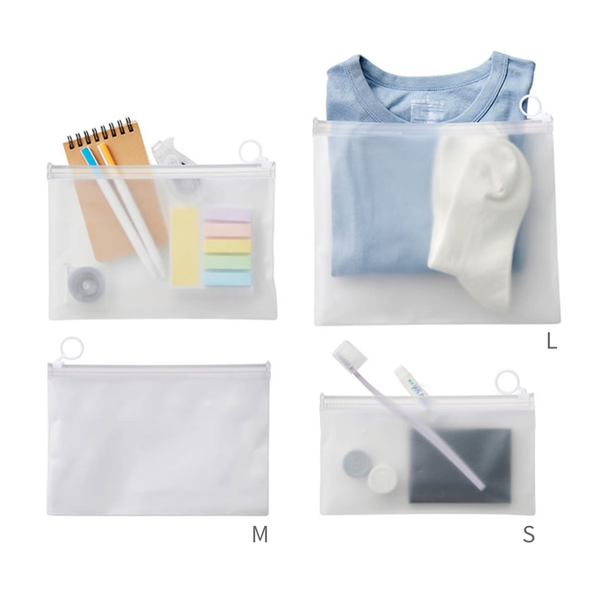 EVA素材のクリアポーチが登場しました!半透明なのでポーチの中身を確認することができます。Tシャツやフェイスタオルなどが収納できる大きめなサイズ感です。