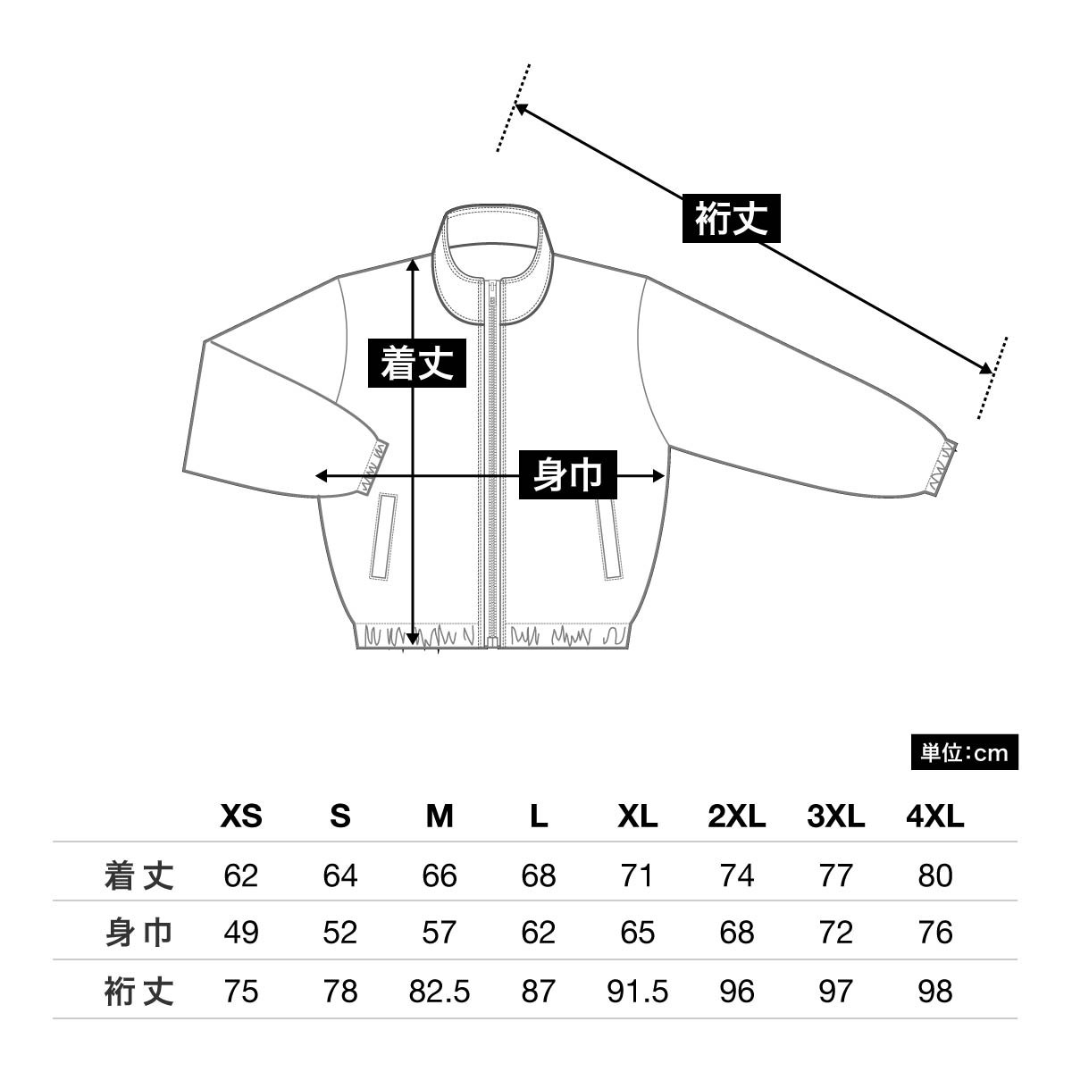 着丈 62 64 66 68 71 74 77 80