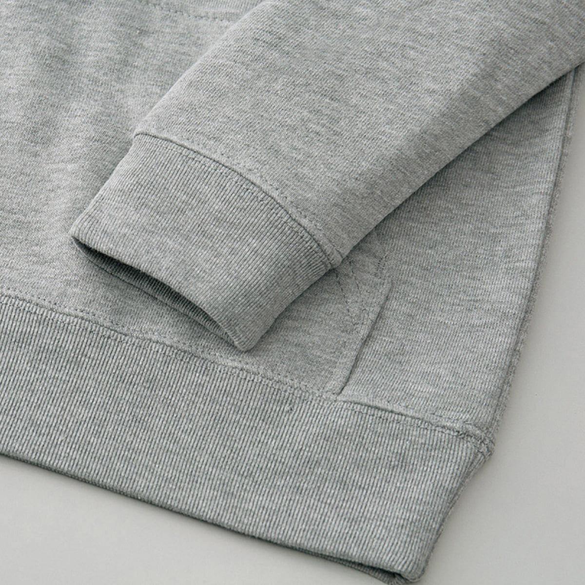 細身のシルエットでタイトな着こなしが可能なフーデッドライトパーカーです。柔らかな着心地が魅力の裏パイルスウェットで、2重のフードでボリュームがあり、シンプルで合わせやすいベーシックなフォルムです。ブラックやミックスグレーの他、明るいカラーバリエーションもあります。男女ともに着こなせるユニセックスアイテムです。