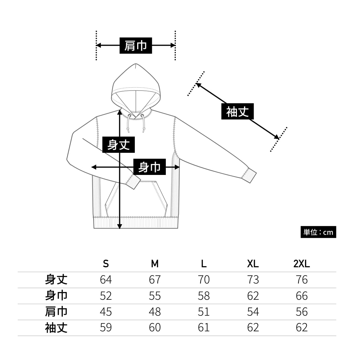 00228-FVH 12.0オンス 裏起毛ヘビープルパーカー サイズスペック表