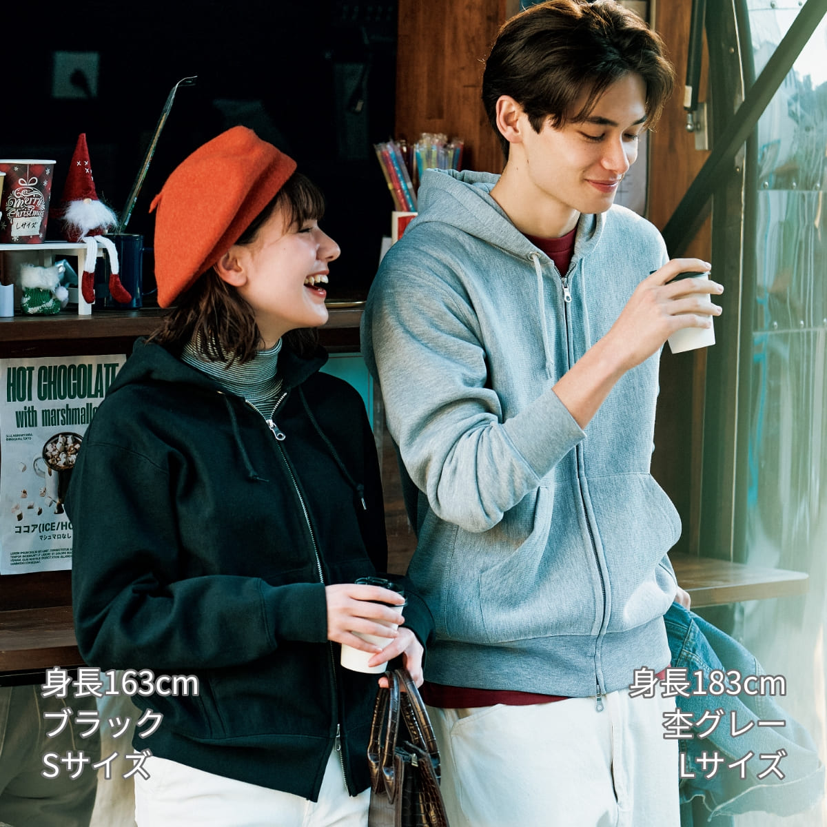 00229-FVZ 12.0オンス 裏起毛ヘビージップパーカー 着用イメージ