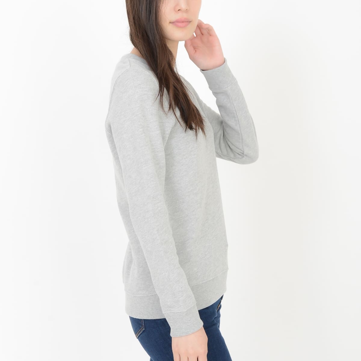 細身のシルエットのクルーネックトレーナー。今までのスウェットと比べても、軽くてライトな着心地が人気です。