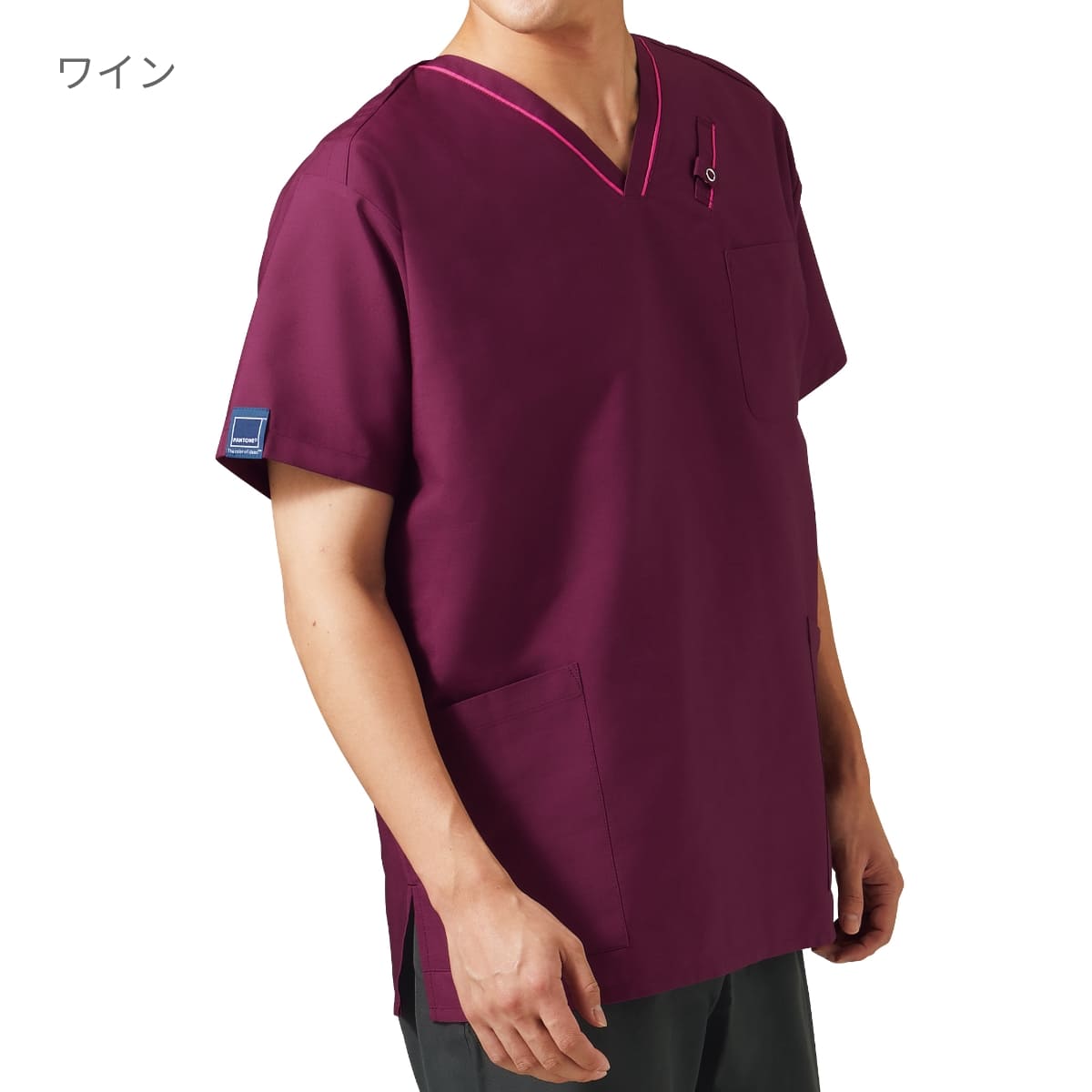 首元の配色ラインがオシャレな大人気PANTONE(パントン)シリーズの男女兼用スクラブ