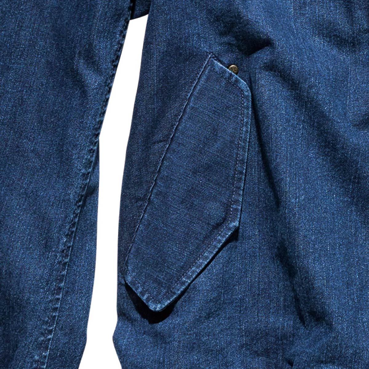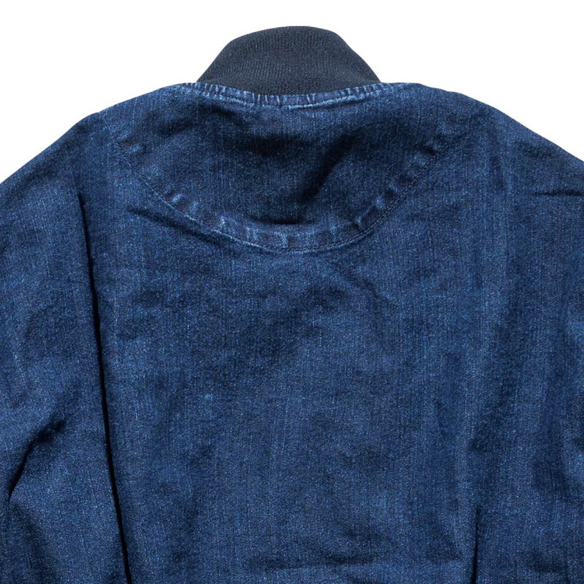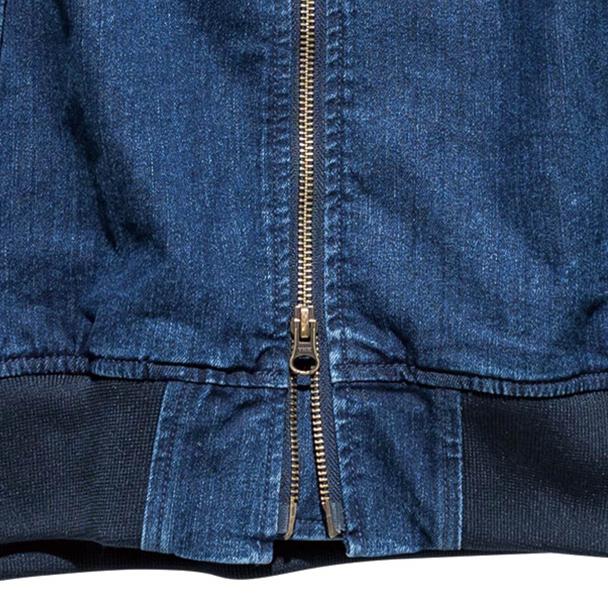 トレンドのMA-1型デニムのミリタリージャケット。洗練されたディテールとコンパクトなサイジングでスタイリッシュなイメージに。裏地がついていない一重仕立て、深さのあるフロントポケットや左袖のペンポケットなど機能面も考慮。作業服には見えないので、おしゃれに着用が可能でジョガーパンツと合わせるのがオススメ。