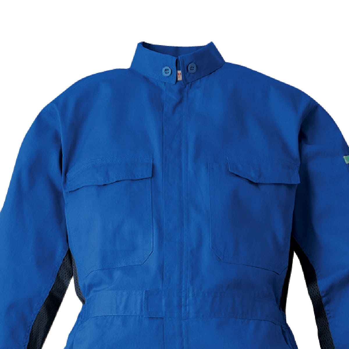 綿のソフトな風合い、袖下から脇にかけてメッシュを採用し、通気性も優れたツナギ