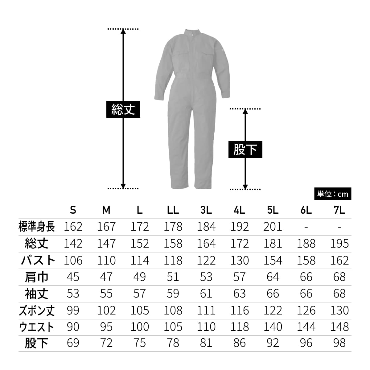 | 標準身長 | 162 | 167 | 172 | 178 | 184 | 192 | 201 |