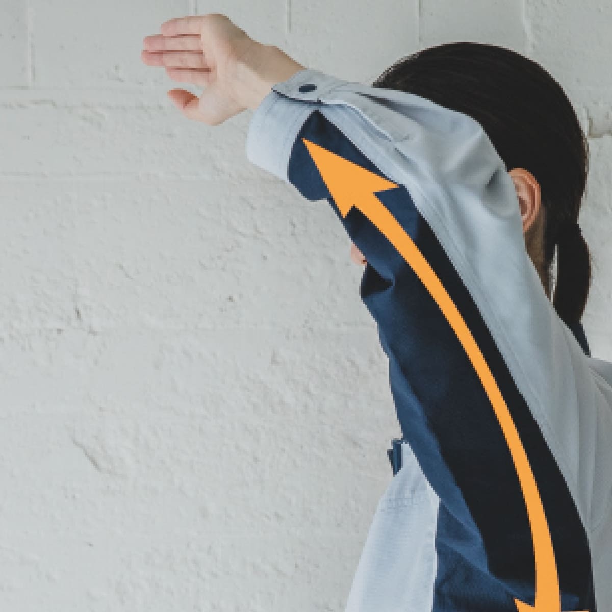 ノ ーフォ ークなしで、前方・上方の腕の動きがスム ーズ。その仕掛けは主に バックスタイルにあり。「フ ロントキッチリ、バックノビノビ」後身頃と機能的なラグラン袖、脇から袖下のパーツをストレッチ方向に裁断する事により、左右 の袖口から袖 口まで、ウエストから脇や袖口まで、一気にグーンと伸びる設計。ツッパリストレスからの解放感。