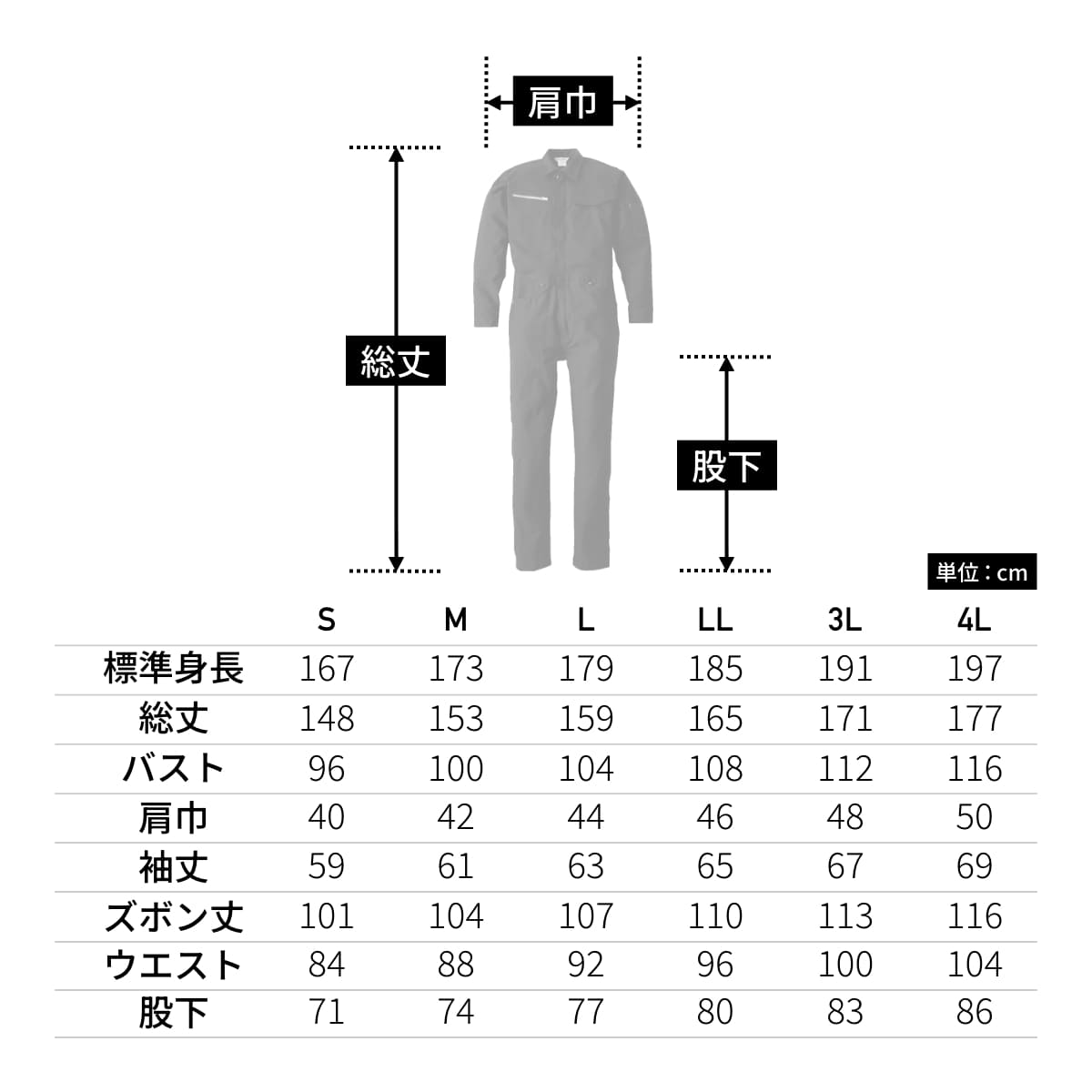 | 標準身長 | 167 | 173 | 179 | 185 | 191 | 197 |