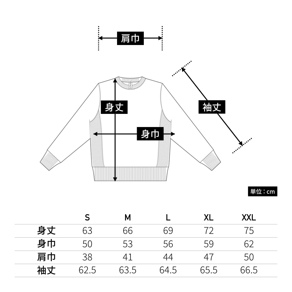 身頃の生地を横向きに使用する事いより縦方向の縮みが少なくなるようにつくられています。