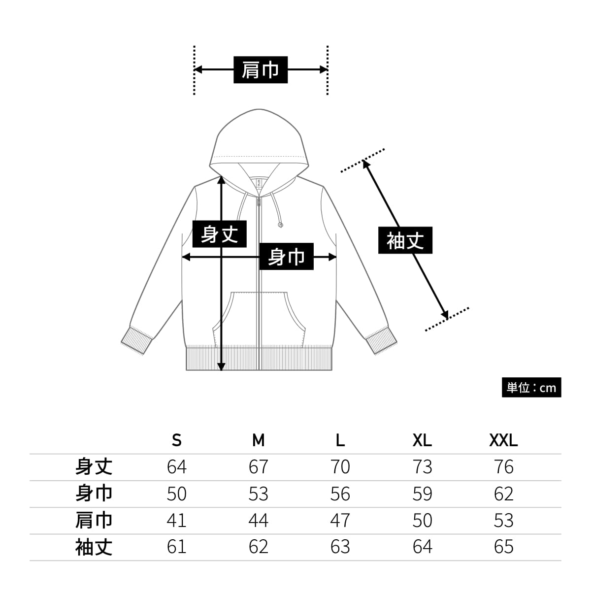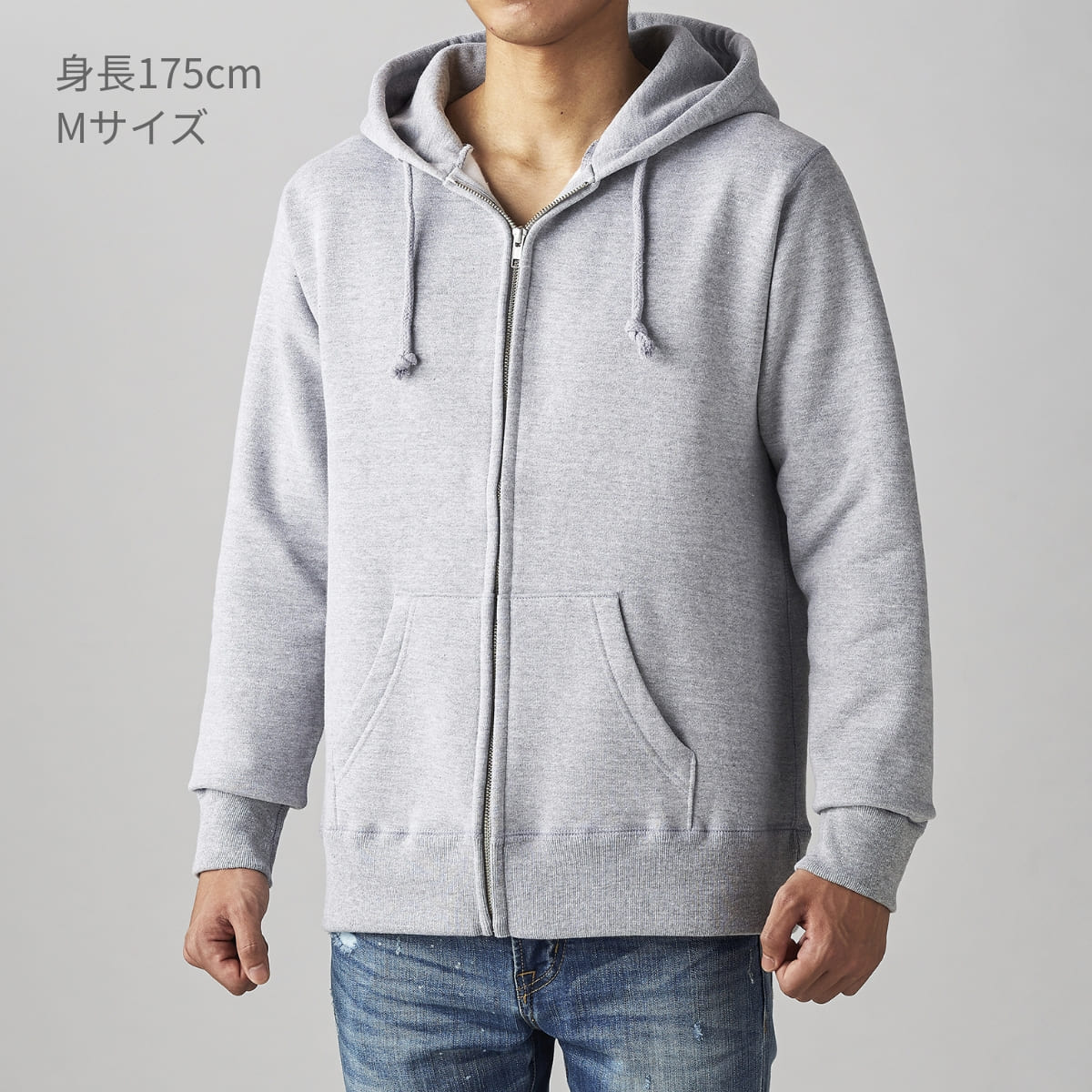 ヘビーオンスで丈夫な裏起毛ジップパーカ。