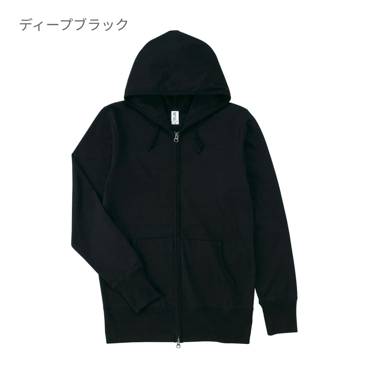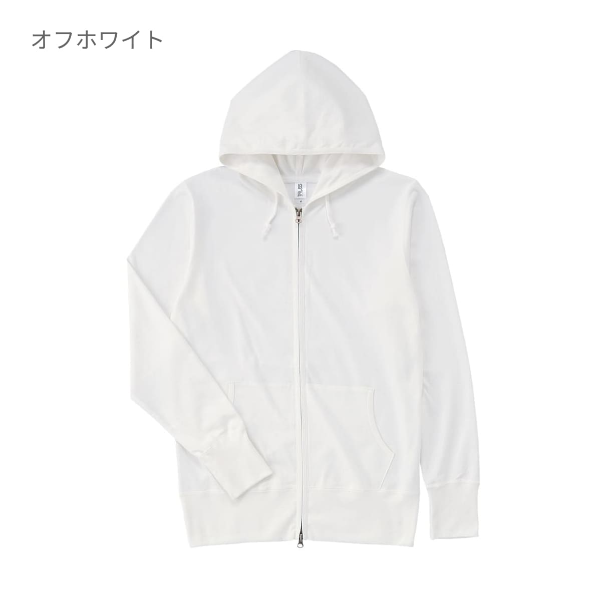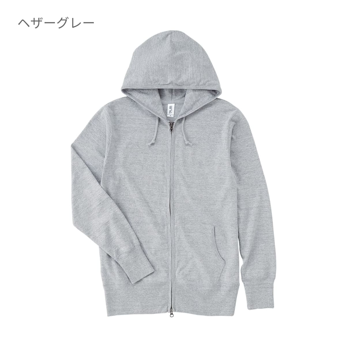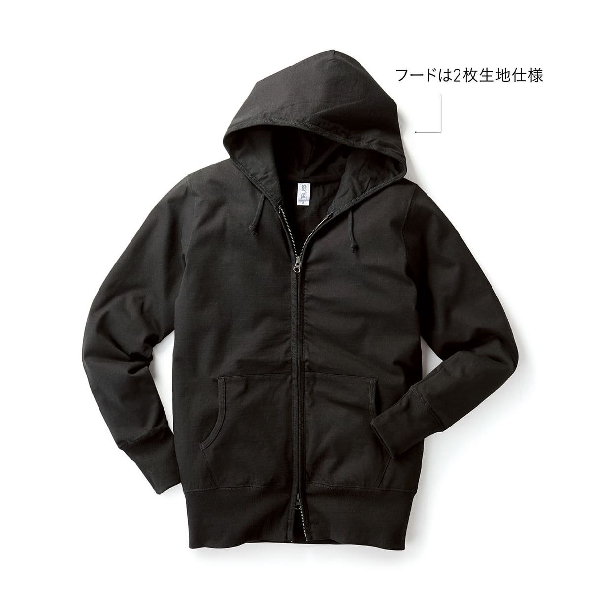 Tシャツ生地を使った、薄手のダブルジップパーカ。