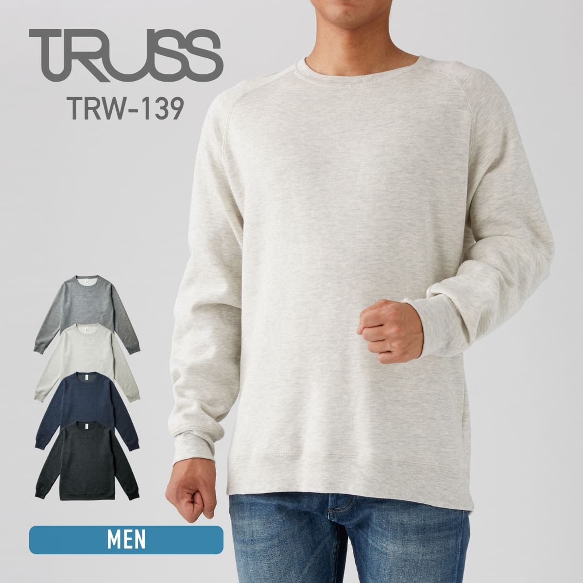 トライブレンド素材を使用した、裏起毛のラグランスウェット。
