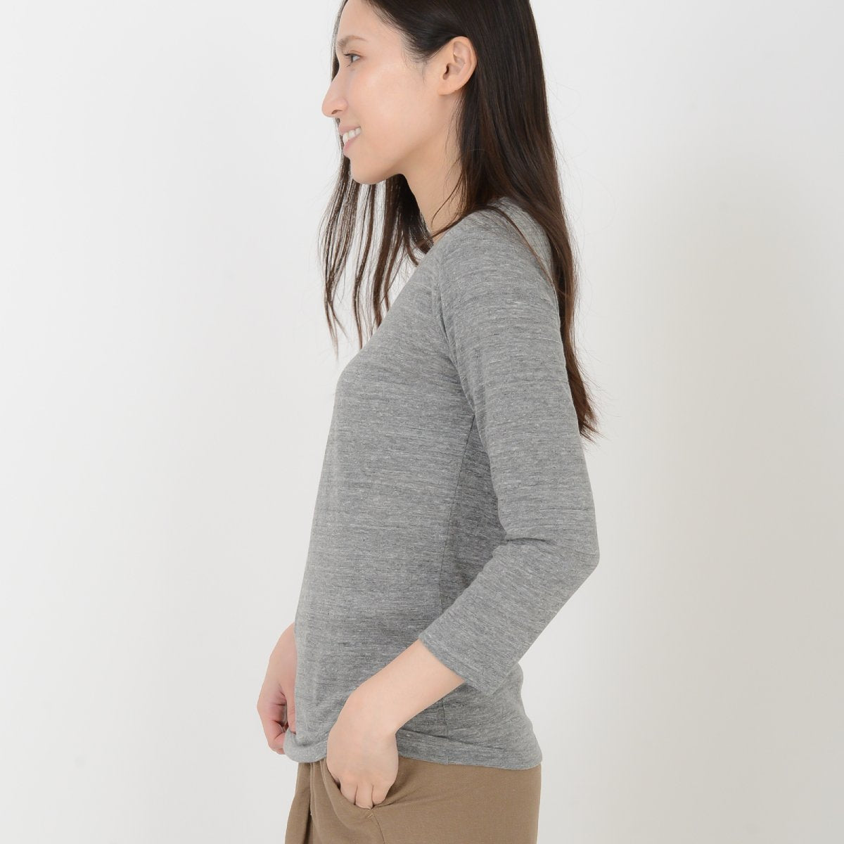 レディースシルエットのトライブレンド7分袖Tシャツ。