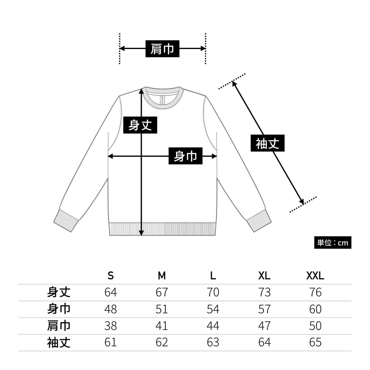 | 身丈 | 64 | 67 | 70 | 73 | 76 |