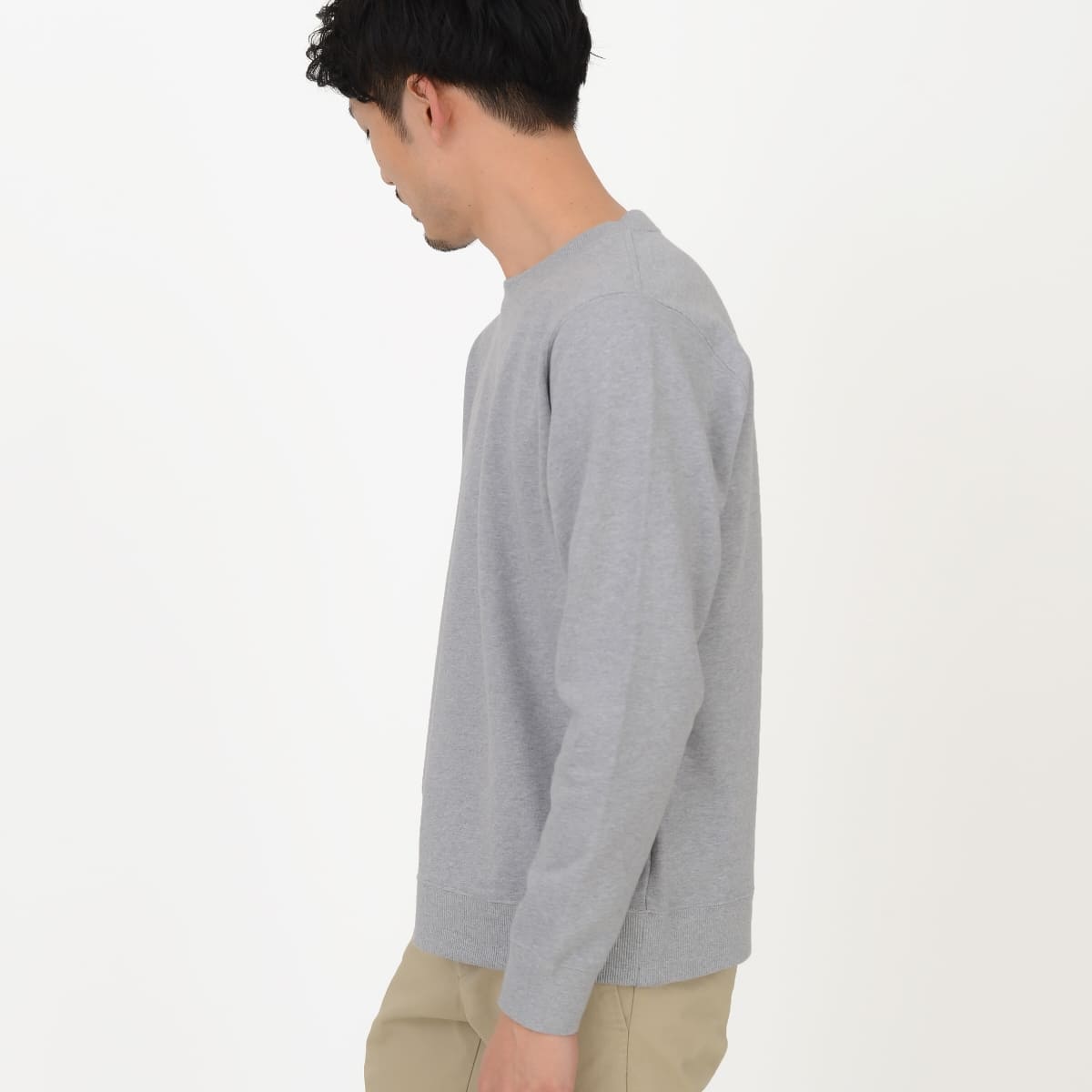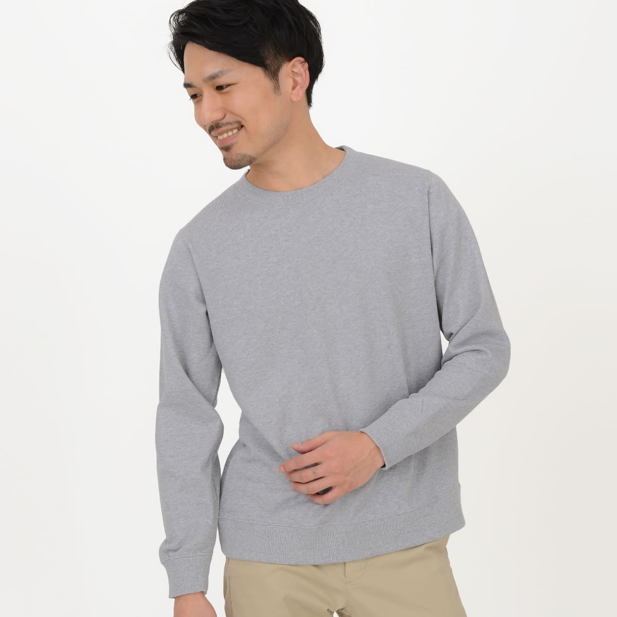 ライトな裏毛で幅広く使えるクルーネックスウェット。
