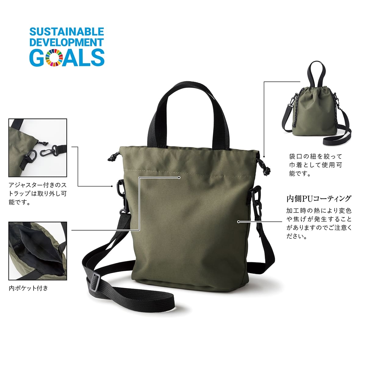 合わせやすい色で、おすすめです。 また、こちらのバッグ、再生ポリエステルで作ったサスティナブルなバッグです。