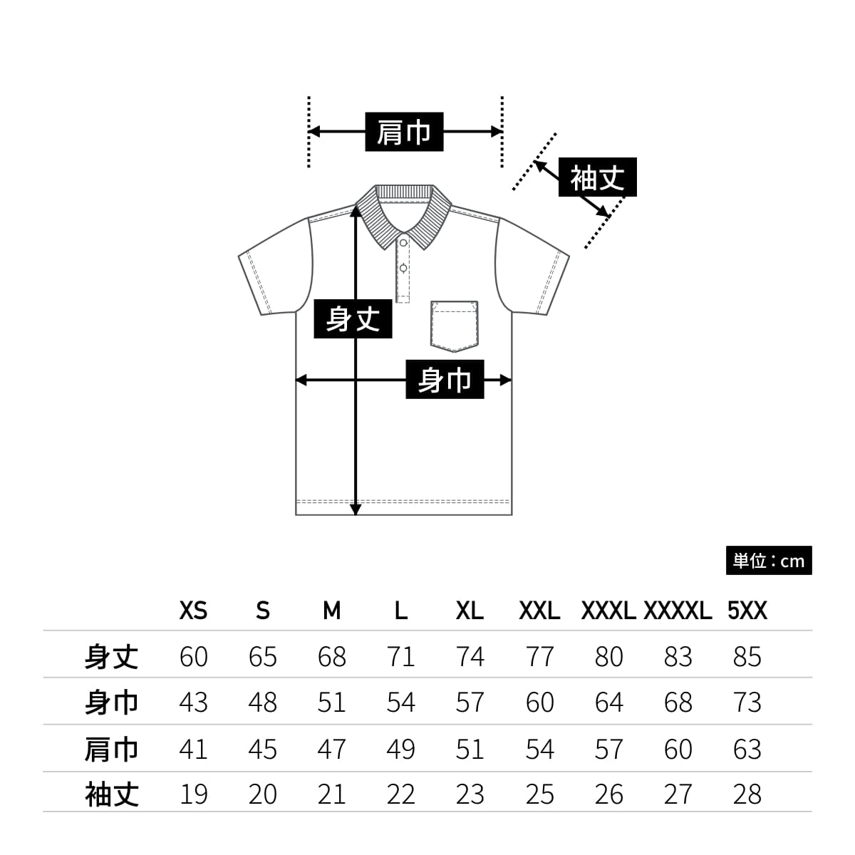 | 袖丈 | 19 | 20 | 21 | 22 | 23 | 25 | 26 | 27 | 28 |