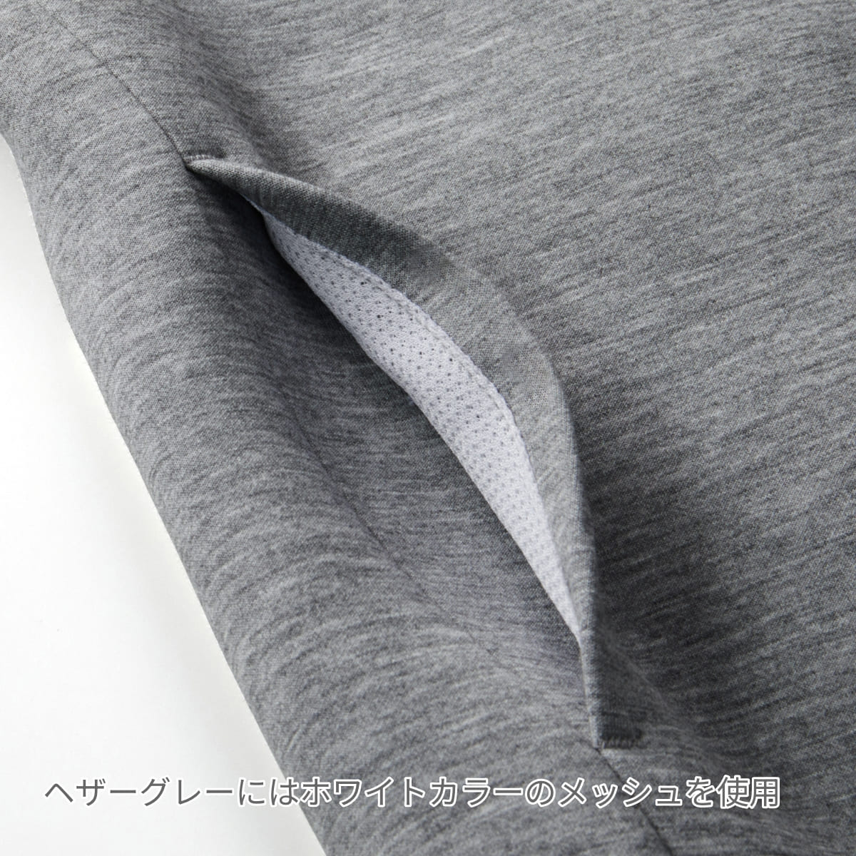 ![]() サイドにはシームポケット付き、ブラックとネイビーにはブラックカラーのメッシュを使用 | ![]() 裾はパイピング仕様で、後身丈はゆるやかなラウンドテール仕様 |