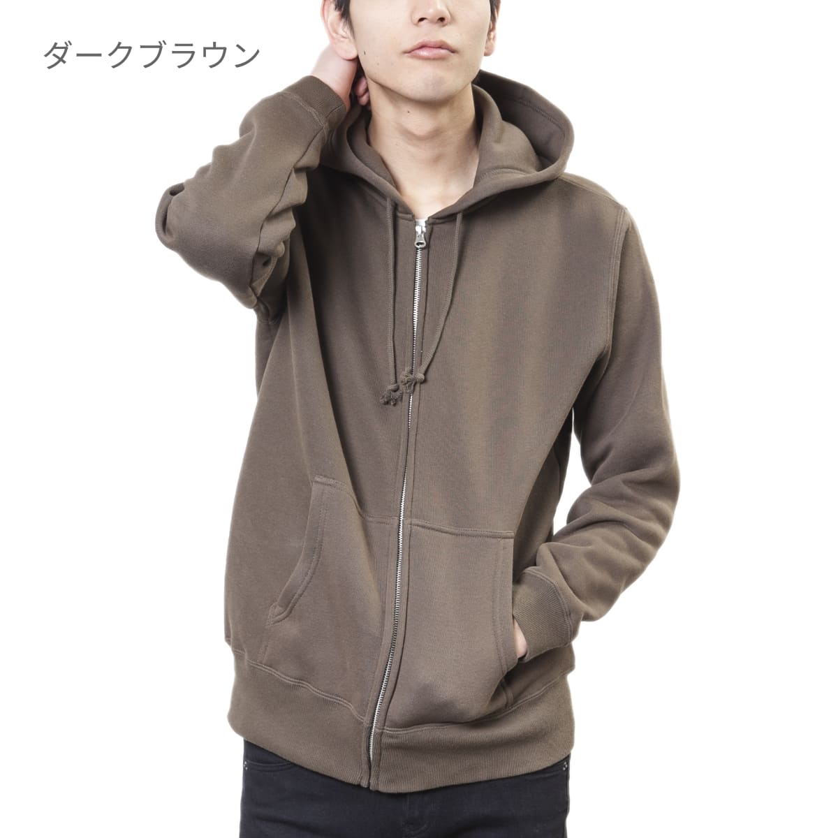着脱が容易なフルジップタイプは、屋内外のアウターとして重宝!裏地はふかふかで保温性の高い裏起毛にしながら、T/C(綿×ポリエステル)の生地にすることで軽くて丈夫なスウェットに仕上げました。表面を綿100%で組成してあるので、プリント加工にも最適。