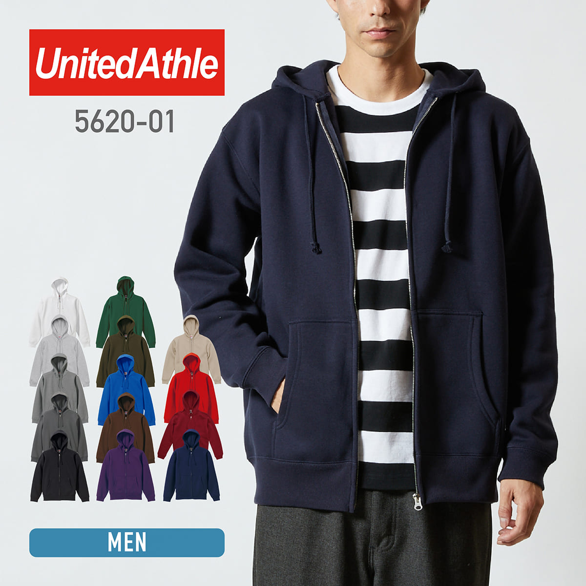 着脱が容易なフルジップタイプは、屋内外のアウターとして重宝!裏地はふかふかで保温性の高い裏起毛にしながら、T/C(綿×ポリエステル)の生地にすることで軽くて丈夫なスウェットに仕上げました。表面を綿100%で組成してあるので、プリント加工にも最適。