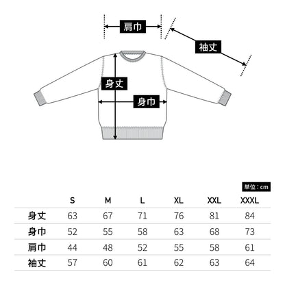 5928-01 10.0オンス CVC クルーネック スウェットサイズスペック表