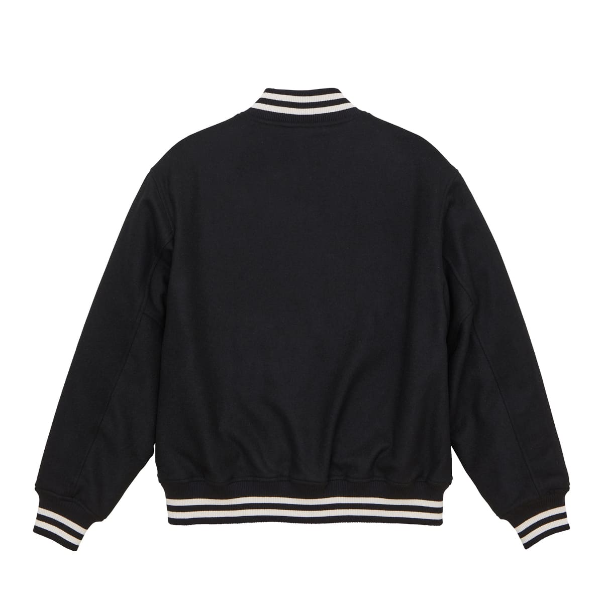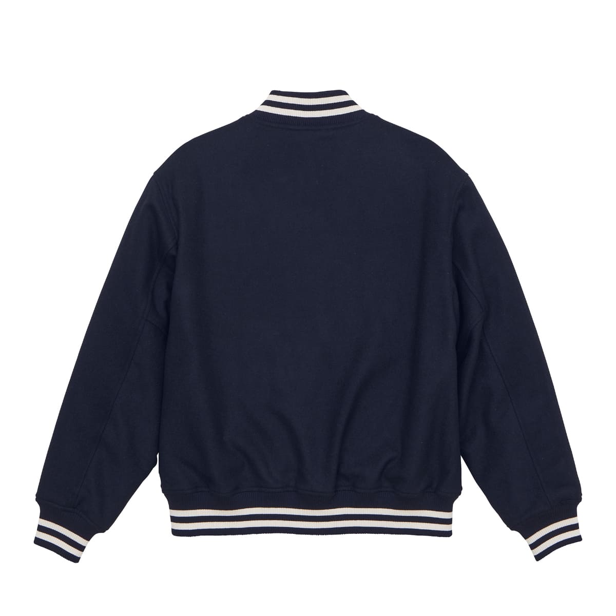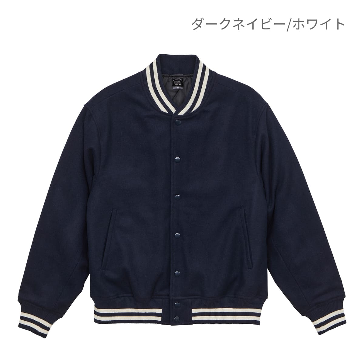 厚地のメルトンを使用した本格仕様のスタジャン。レトロな雰囲気たっぷりのカラーリングで、とことんオーセンティックに仕上げました。ごわつきが強くなりすぎないよう、あえてウール100%ではなくポリエステルを混ぜたことによって実現した、柔らかくなめらかなタッチが魅力。スウェットやニットとレイヤードしても野暮ったくならない大きめのシルエットが今っぽい、高級感抜群のジャケットです。ラインの入ったリブや艶ありのパーメックス型ボタンなど、ディテールがほどよい着こなしのアクセントに。