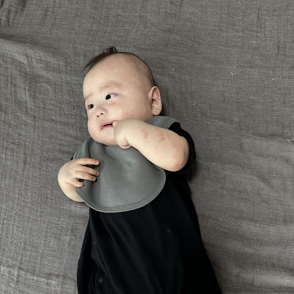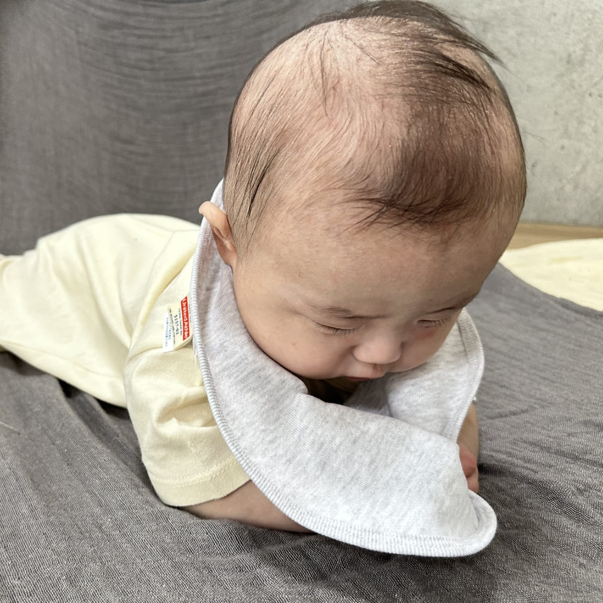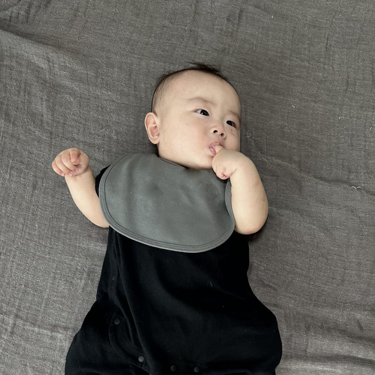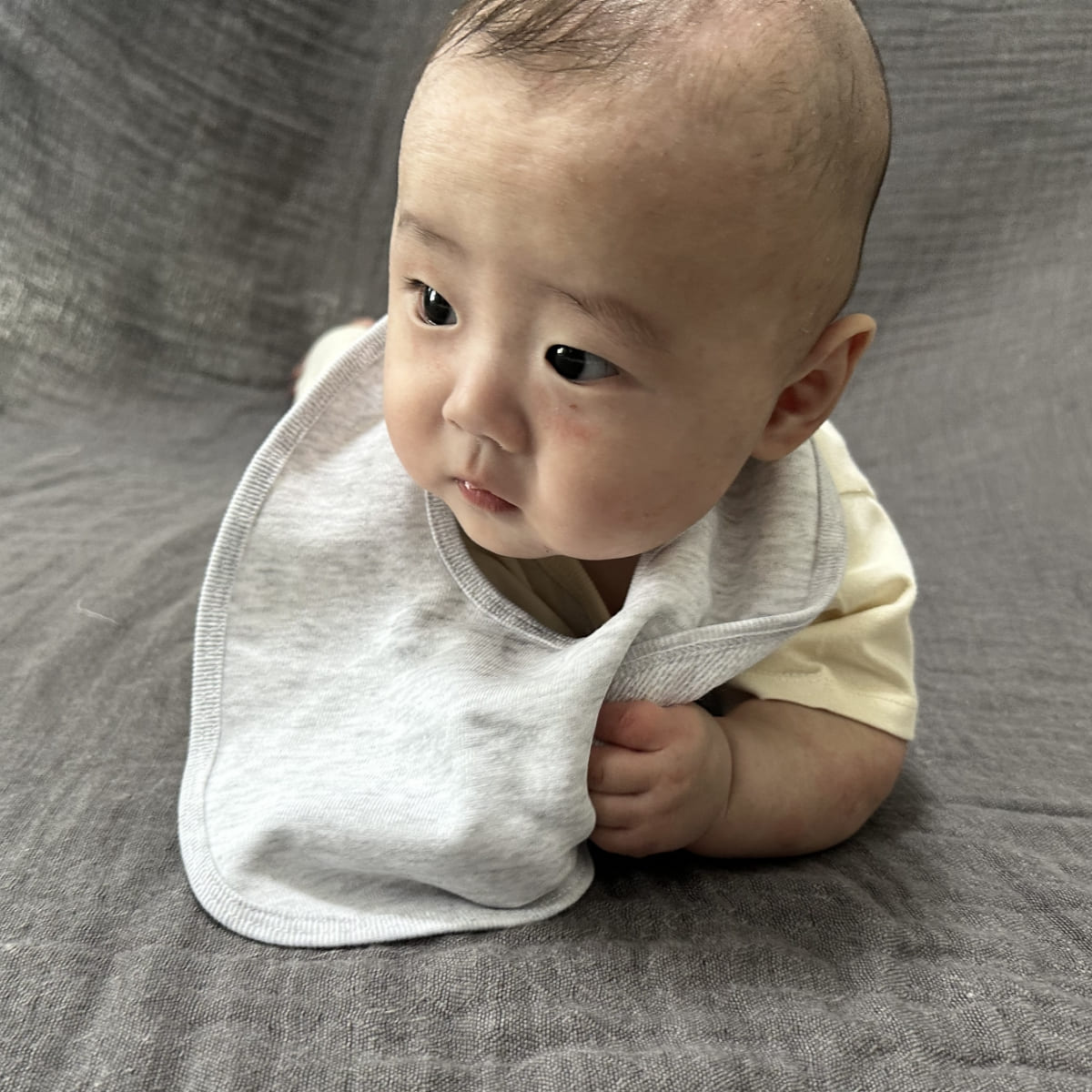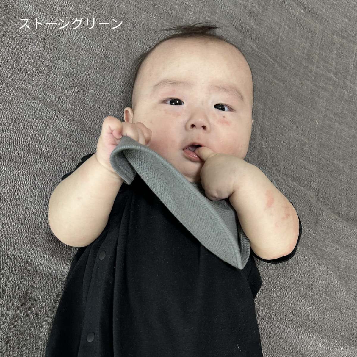 こちらは10.0オンスの厚手生地で綿100%の裏パイル素材を使用していますので、スタイを嫌がるベビーには無理に着用せずに、よだれ拭きとしても活用できます。