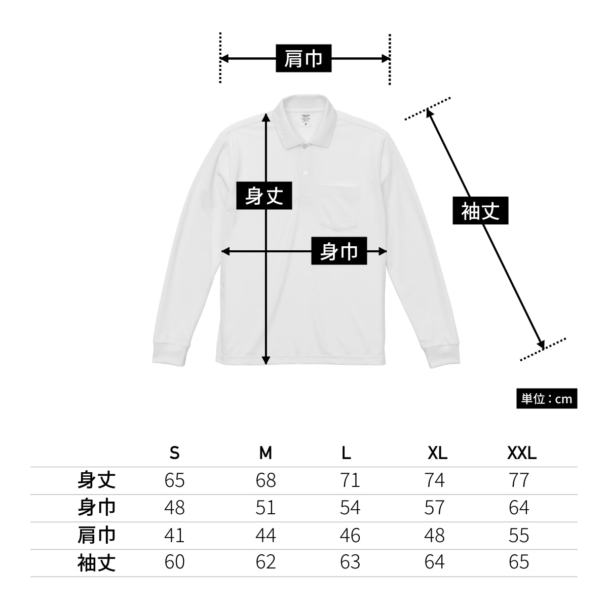 | 袖丈 | 60 | 62 | 63 | 64 | 65 |