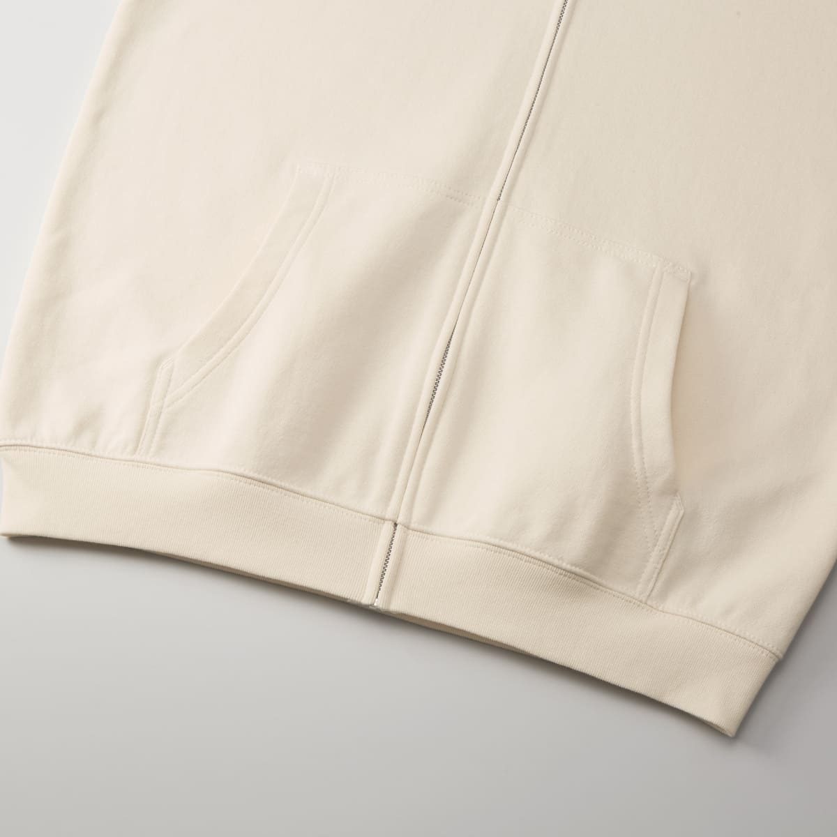 ![]() 大きめのカンガルーポケット | ![]() 生地のふっくら感と伸縮性が失われないようこだわった生地が特徴 |