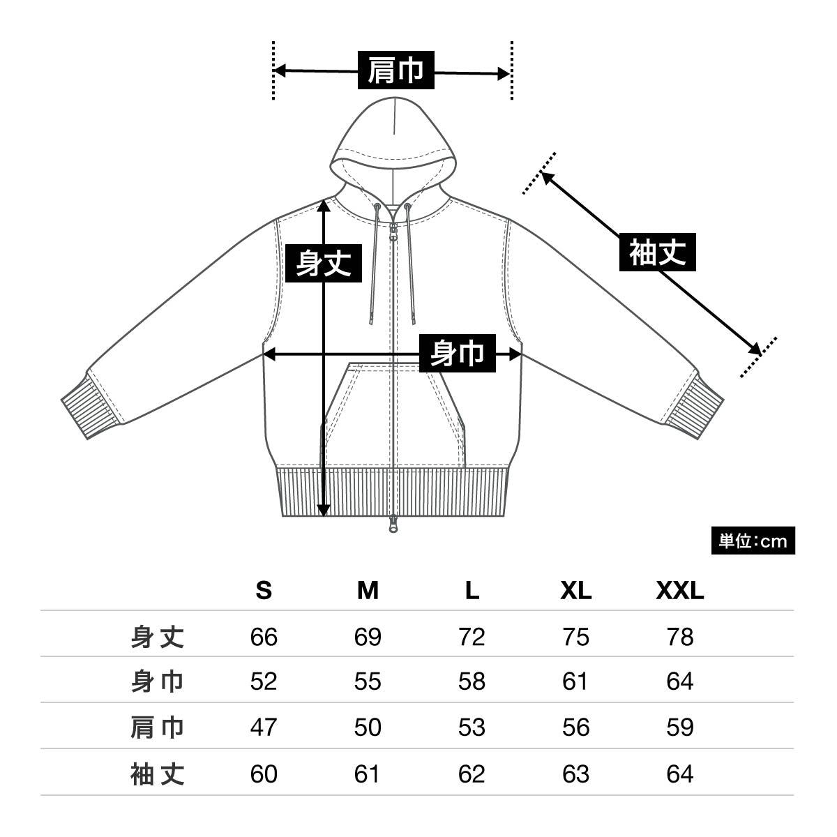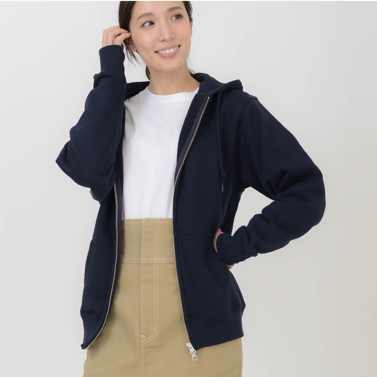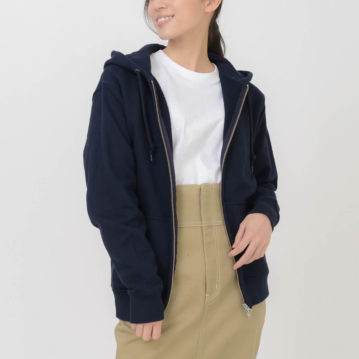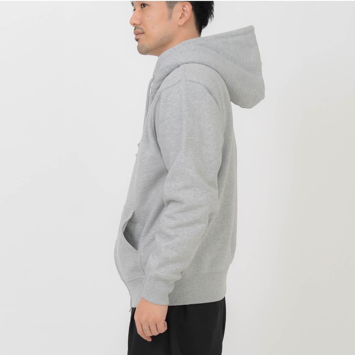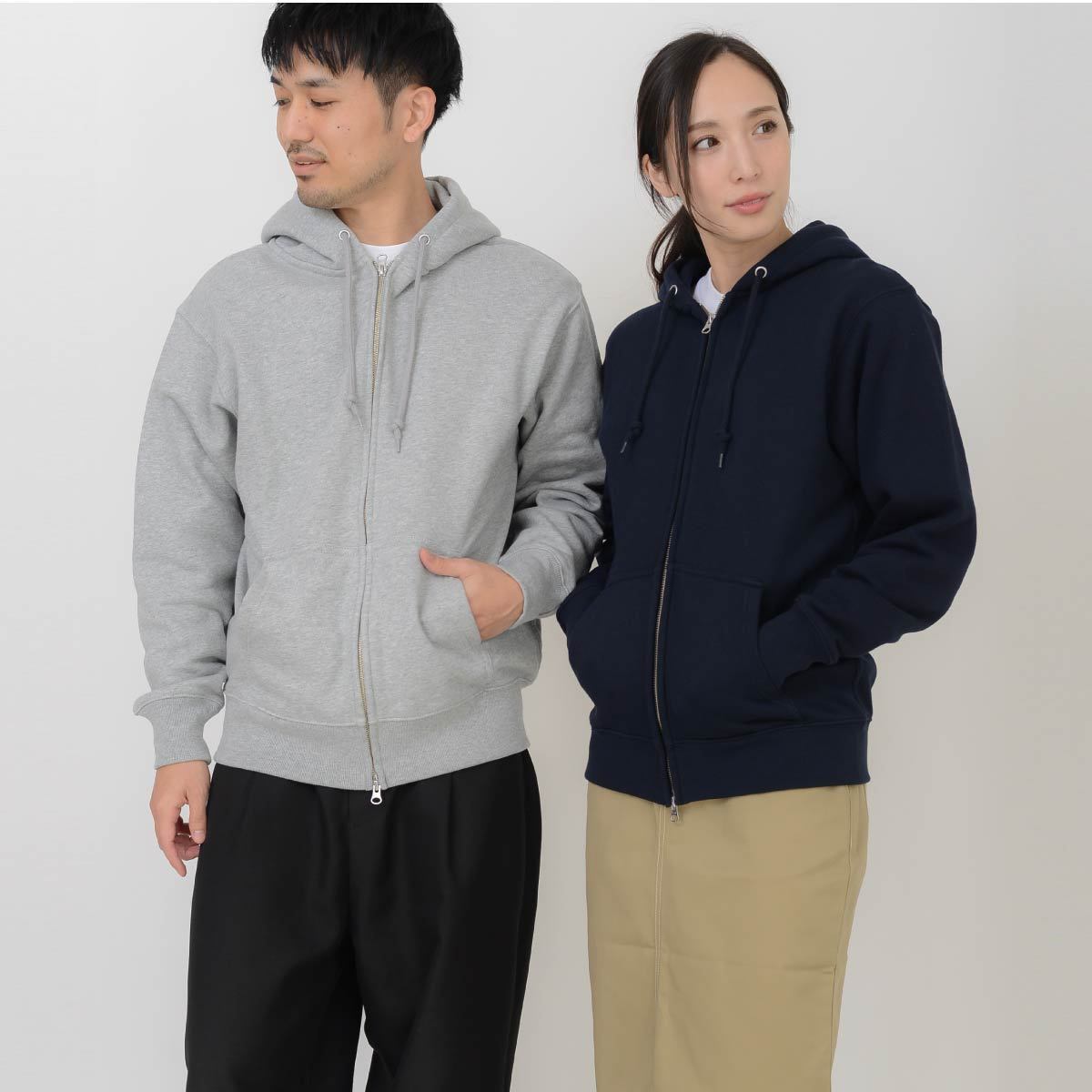 太番手の縫製糸を採用したヘヴィーでしなやかな裏パイルが魅力、ダブルファスナーで脱衣と着まわしを兼ね備えたアウター感覚のジップパーカ