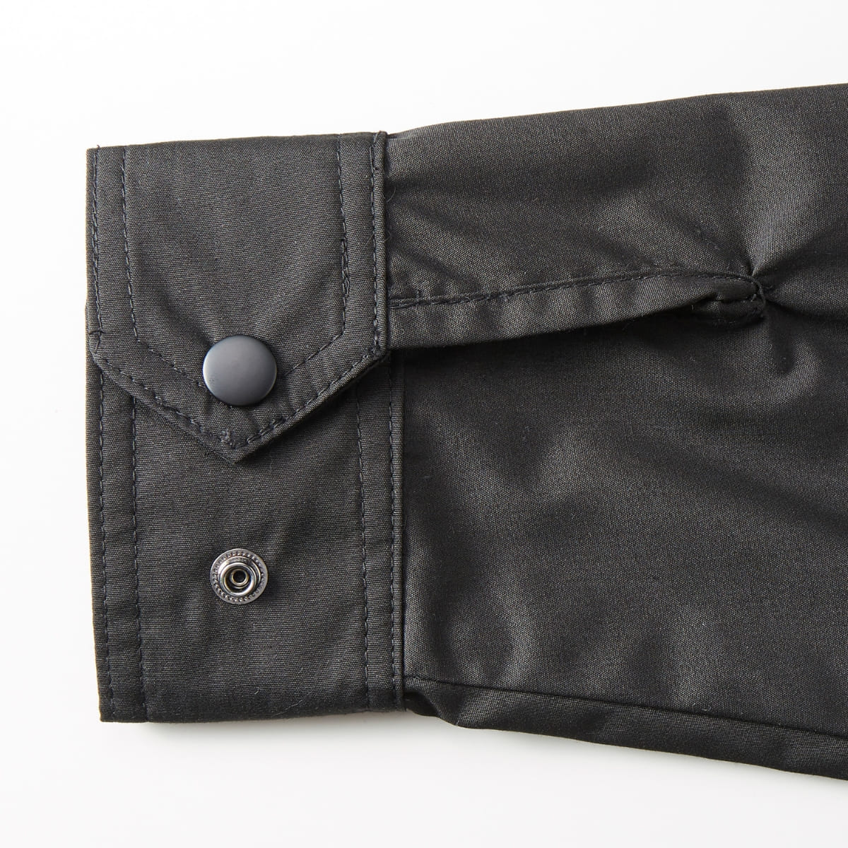 ![]() フロントとポケット口には金属製のアメリカンなドットボタン仕様(パーメックス型) | ![]() 風の侵入やウェアのバタつきを調整できるドローコード仕様(丸ひも) |