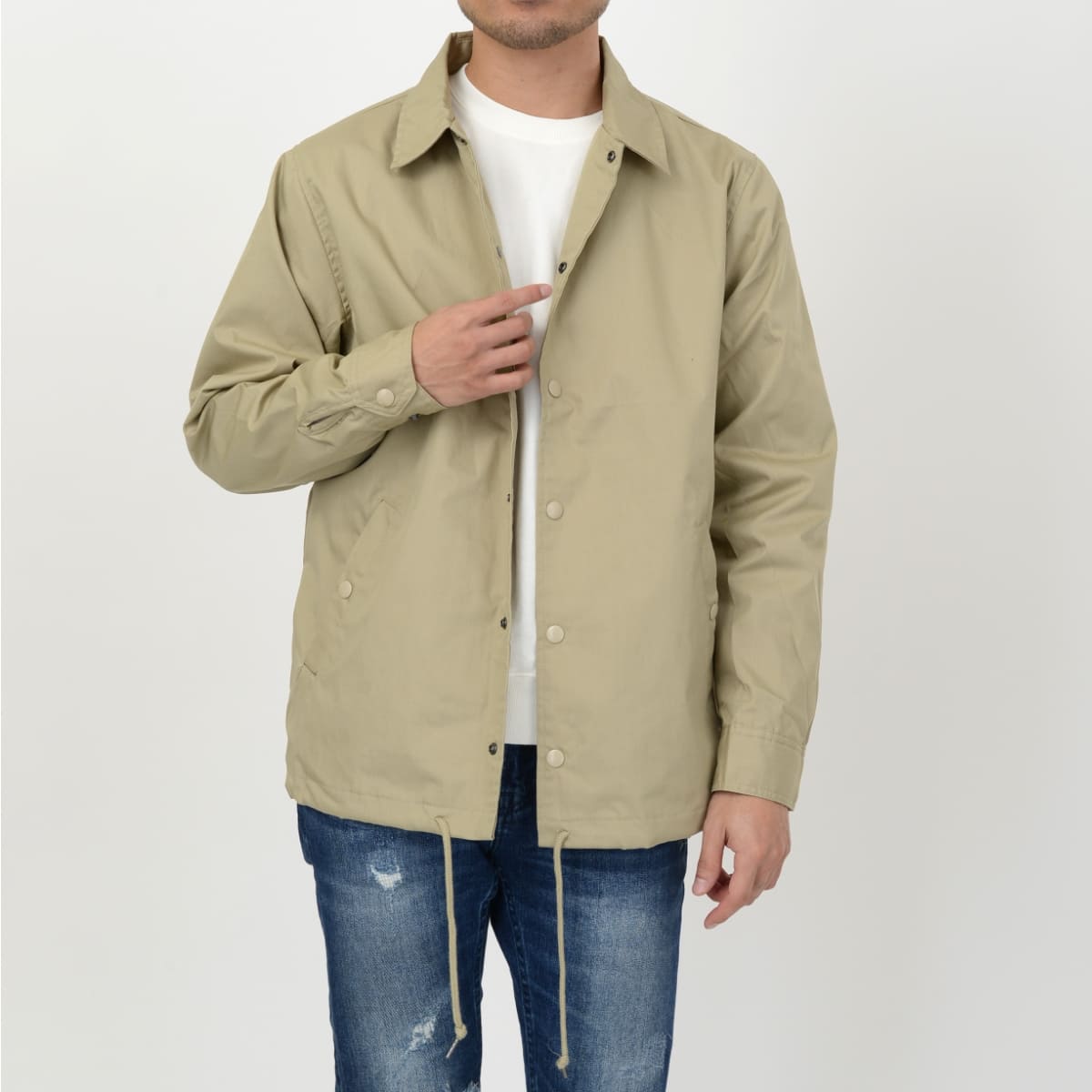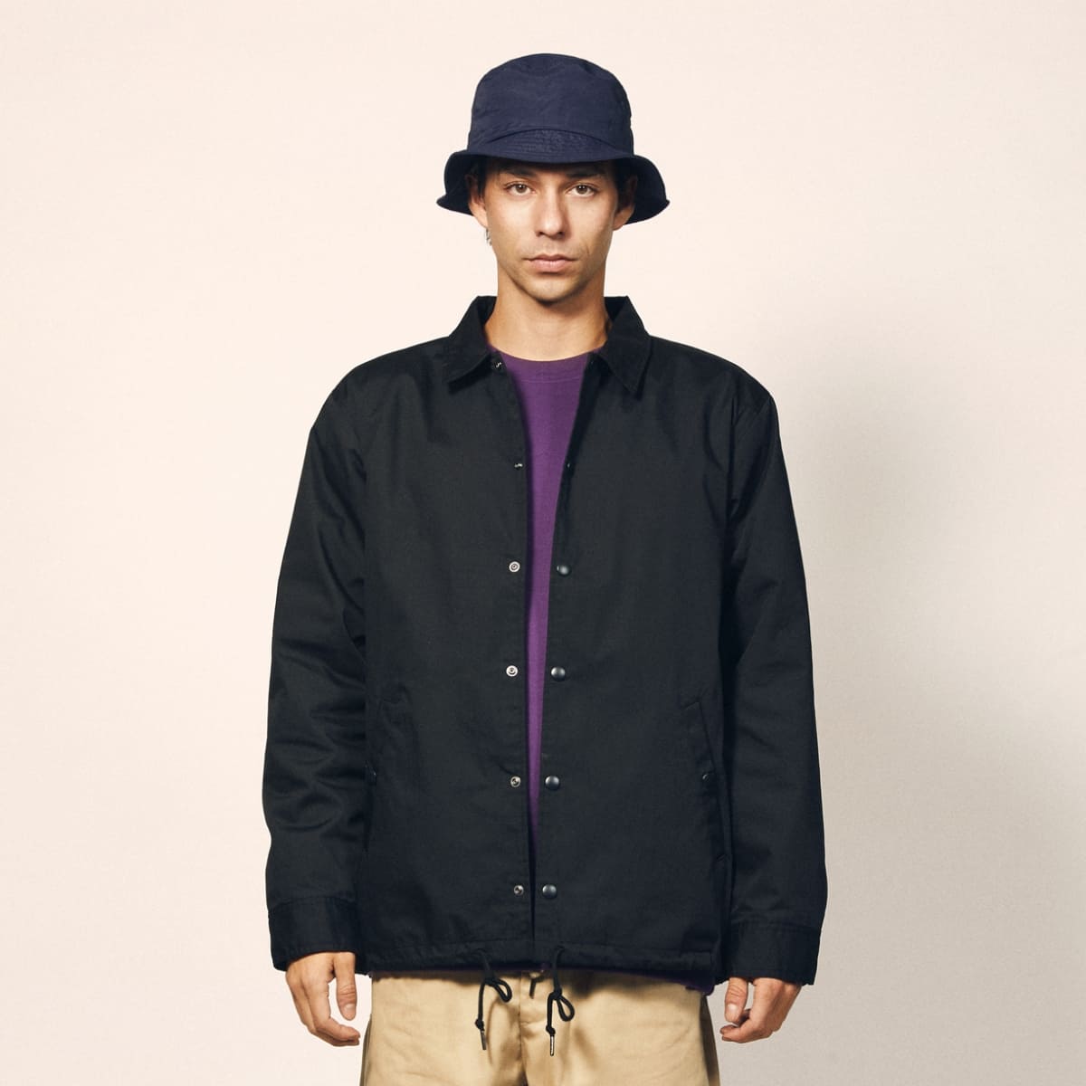 コーチジャケットをT/Cウェザーのマットな生地で仕上げ、L.A.ワーカーのスタイルを体現。シンプルながら随所へこだわりを詰め込み、「働く人の誇りを支える一枚」に。ユニフォーム・ワークウェアとしてだけでなく、もちろんストリートスタイルへのコーディネートにも欠かせない!