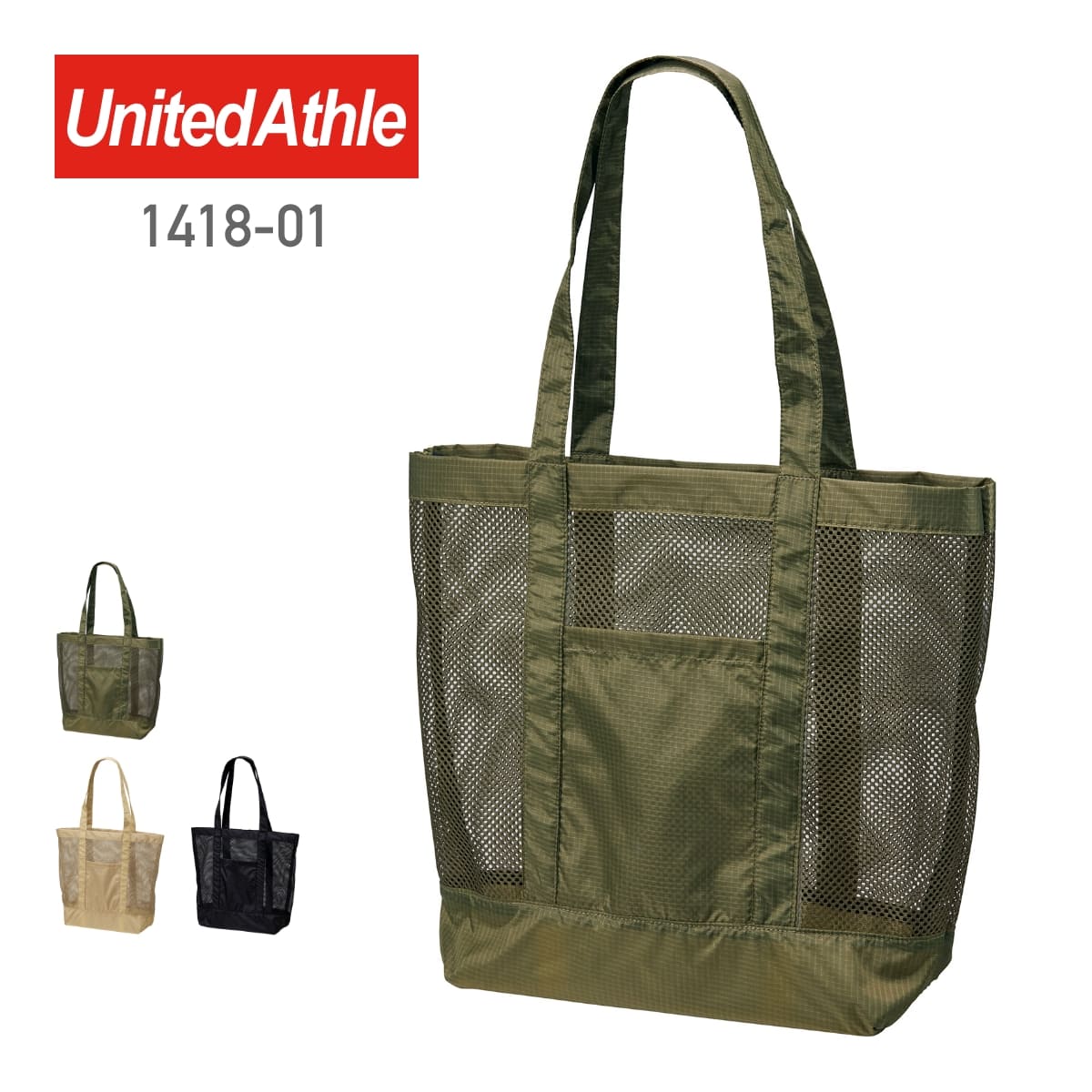 ライトナイロン リップストップ メッシュ トートバッグ | ノベルティ(小物) | 1枚 | 1418-01 | オリーブ