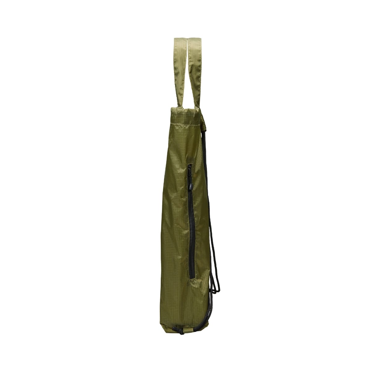 スポーツシーンはもちろん、フィッシング、サウナ、キャンプからシティユースまで、動き回るシーンにはおあつらえ向きの軽量ジムサック。裏側にアクリルコーティングを施したナイロン製のリップストップ生地は、スポーティー過ぎずほどよくカジュアルな印象で、耐久性も抜群。サイドファスナーを開けば、背負ったままでも物の出し入れが可能なため、ジョギングやサイクリングなどの合間にもしまったギアをイージーに取り出すことができる優れモノ。肩ひもにはタフなポリエステル製の丸ひもを採用したため、いつまでも快適に使い続けることができます。